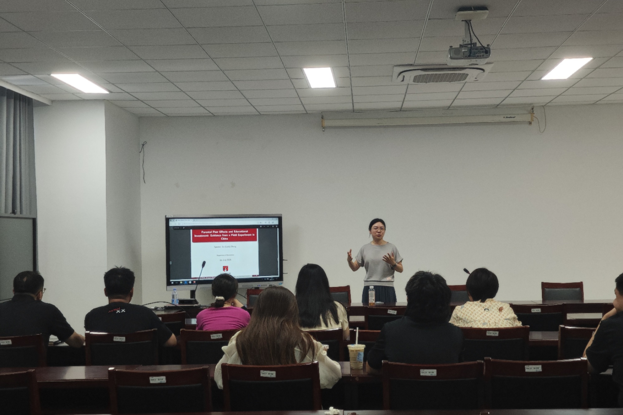 Lyla Zhang博士围绕讲座主题,从理论模型构建、研究方法创新、数据收集与分析等多个维度展开阐述。她结合中国社会的实际情况,深入剖析了同伴信号在家庭课外教育投资决策中的传导机制,分享了研究过程中发现的有趣现象和重要结论。