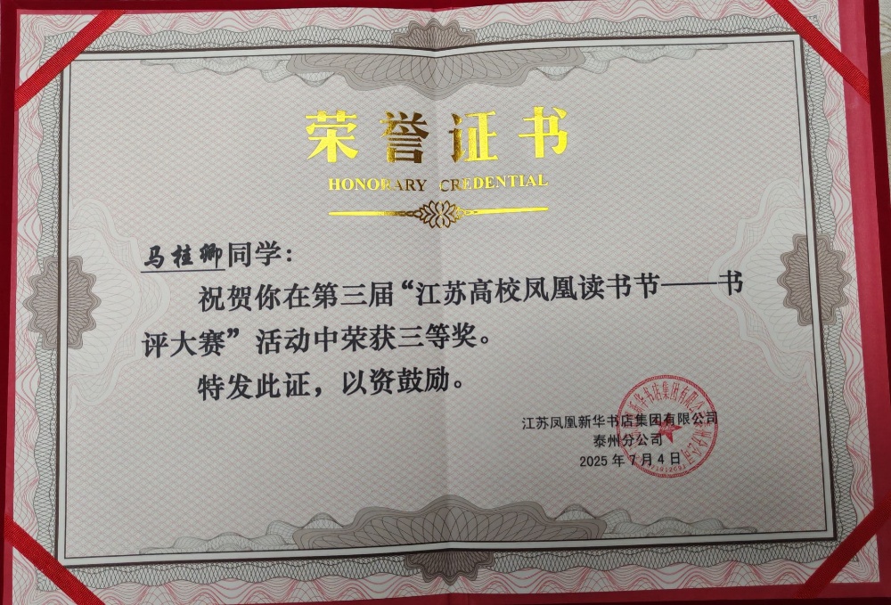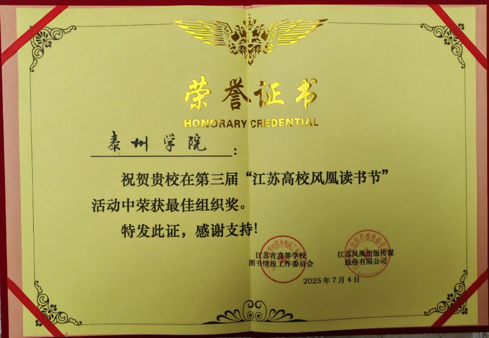 7月4日,第三届江苏高校凤凰读书节颁奖典礼在苏州举行。米兰官网图书馆凭借出色的组织工作,从全省172所高校中脱颖而出,荣获“优秀组织奖”,成为7所获此殊荣的高校之一。同时,米兰官网LETOU国际米兰官网2024级商务英语专业马桂卿同学在读书节活动书评大赛中荣获三等奖。