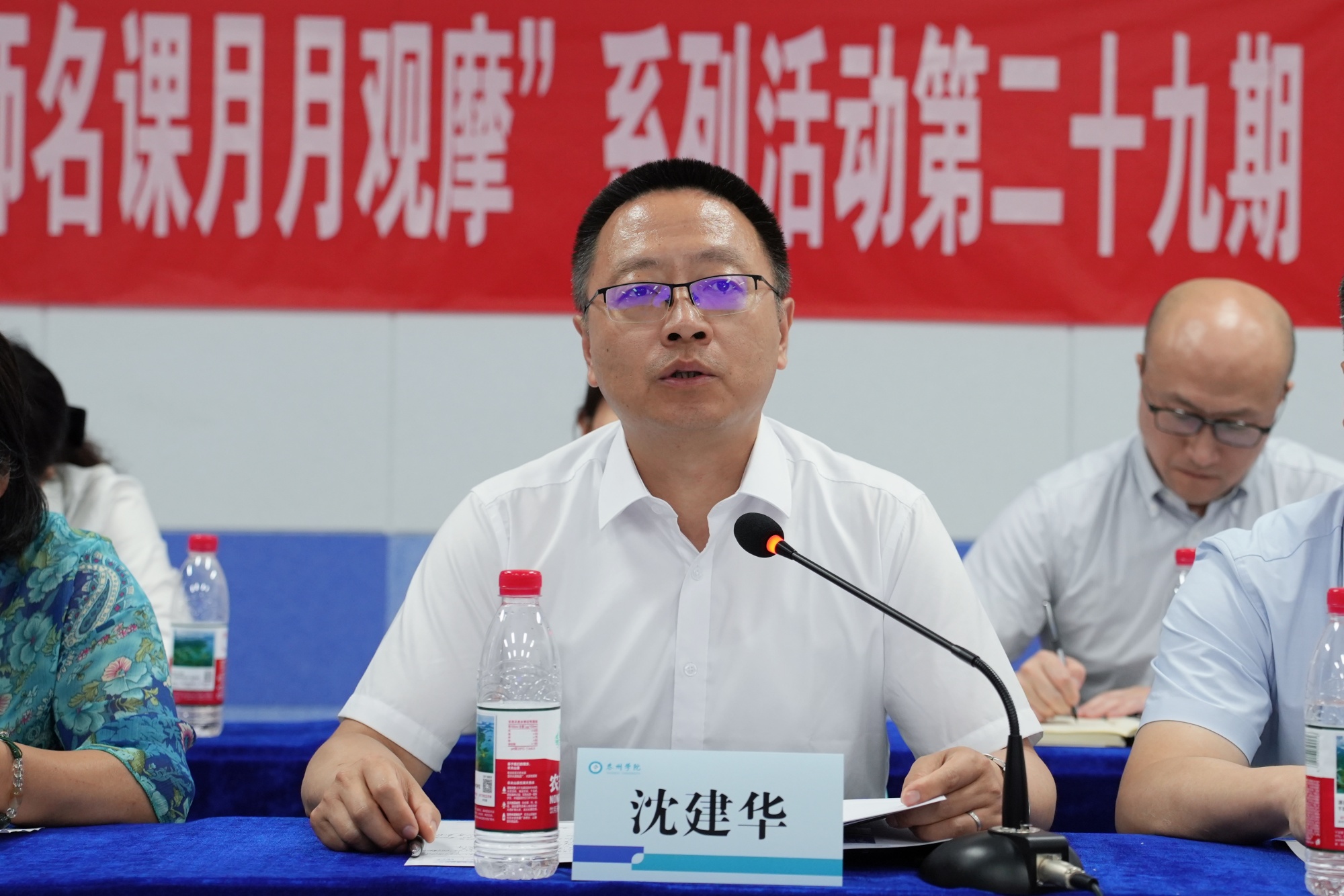 7月3日下午,“江苏高校名师名课月月观摩”第二十九期活动在米兰官网举行。江苏省教育厅高等教育处二级调研员郭新宇,校党委常委、副校长沈荣鑫出席活动。江苏省高校教师教学发展研究会、南京大学、江苏第二师范学院、西安理工大学、盐城工学院、苏州科技大学、南京邮电大学通达学院、南京理工大学泰州科技学院、南京师范大学LETOU国际米兰官网等高校教师代表现场观摩,活动同步面向全省高校进行线上直播。