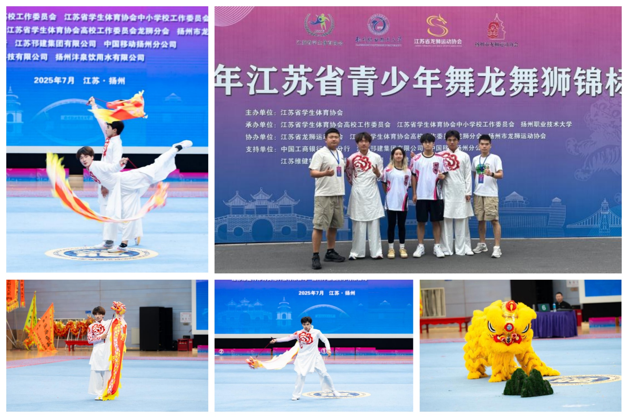 7月8日至11日,由江苏省学生体育协会主办、省龙狮运动协会协办的江苏省青少年舞龙舞狮锦标赛在扬州职业技术大学体育馆举行。本次赛事汇聚了40支代表队近800名运动员,在舞龙、南狮、北狮、彩带龙四大项目中展开激烈角逐。米兰官网武术运动队首次出征便崭露头角,共获奖4项:刘晨与李晨昊组成的双人彩带龙荣获双人项目第六名;刘晨在单人彩带龙项目获得第四名,陈宣伶和刘晨分别获得传统南狮和彩带龙项目的个人道德风尚奖。