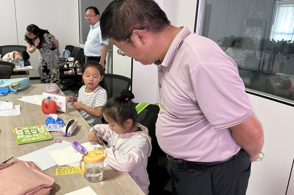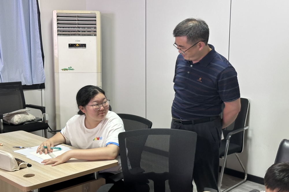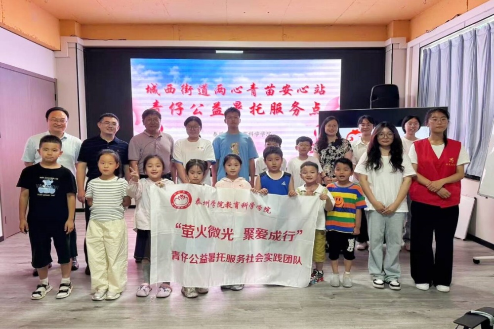 7月11日下午,LETOU国际米兰官网党总支书记仲宁,院长潘小明,党总支副书记、副院长孙晓敏,副院长朱以财一行赴海陵区城西街道、红粟书房看望“萤火微光,聚爱成行”青仔公益暑托服务团队。
