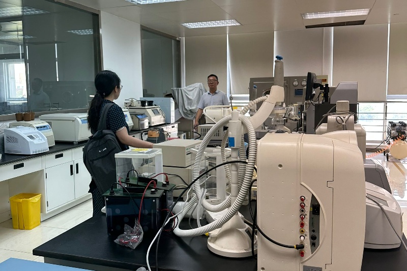 在医药高新区科创人才中心副主任施小明陪同下,牟伊一行实地参观了中心小分子药物研发、大分子药物研发以及分子诊断与基因测序技术服务等平台,详细了解了高效液相色谱仪、气相色谱仪、原子吸收光谱仪、傅立叶变换红外光谱仪等关键设备的运行与应用情况。双方围绕共建分析测试中心与教学实践基地进行了深入交流,并达成初步合作意向,近期将就具体合作事宜展开进一步磋商与落实。
