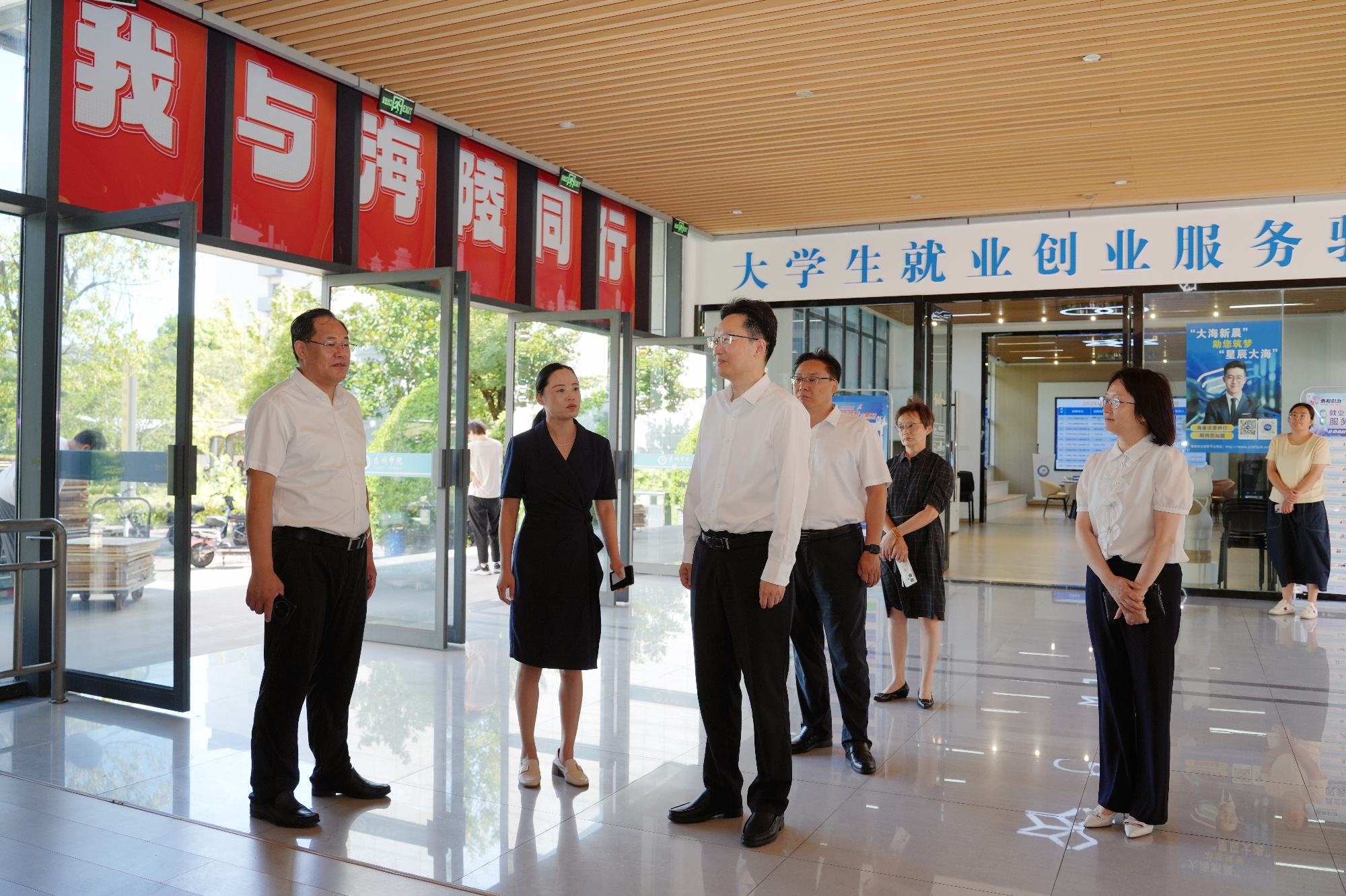 揭牌仪式举行前,周恒新实地查看了泰州市科创人才学院办公场地及校地共建就业人才服务站。在科创人才学院,他仔细询问了设施配置、课程体系、培训容量等情况,对米兰官网的支持给予充分肯定;在校地共建就业人才服务站,他与工作人员深入交流,详细了解服务站在人才对接、就业指导等方面的运行模式,对学校精准服务地方人才需求的举措表示认可。