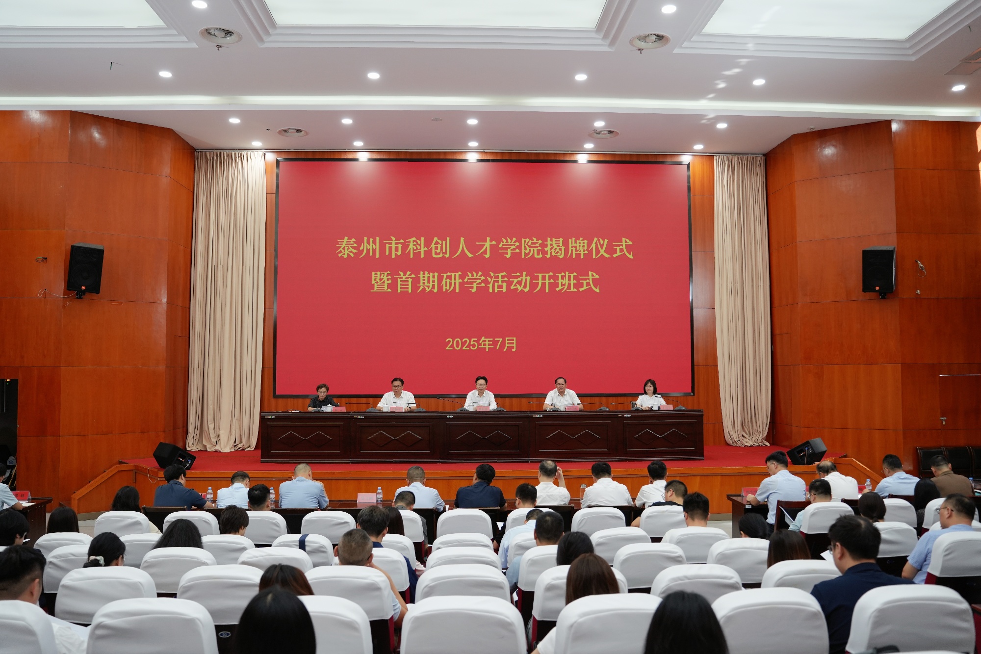 7月29日,泰州市科创人才学院在米兰官网正式揭牌成立。泰州市委常委、组织部部长周恒新,米兰官网党委书记、泰州市人才发展研究会会长徐向明,党委常委、副校长卜慧芬,泰州市委组织部副部长黄新华等出席活动。
