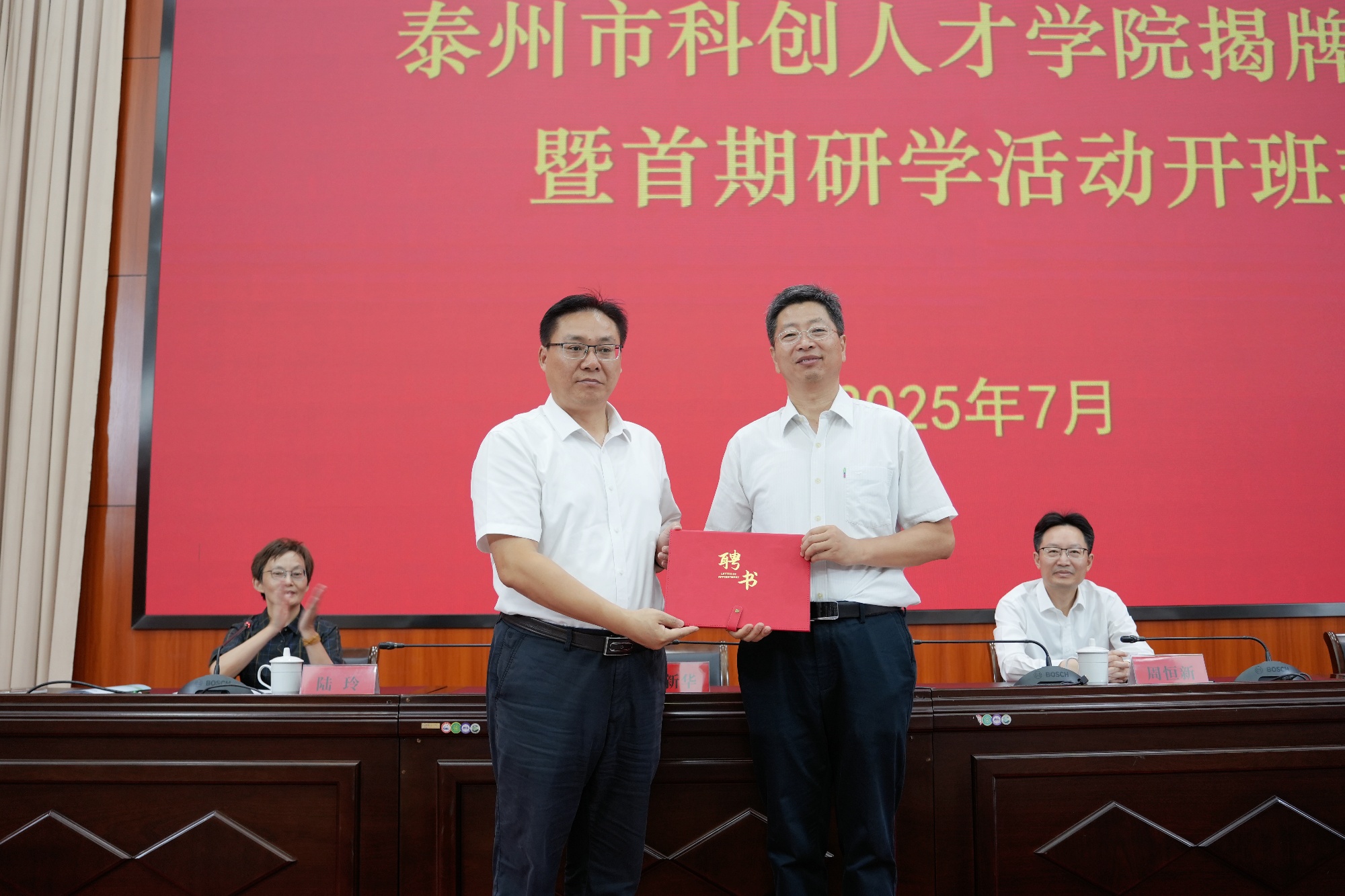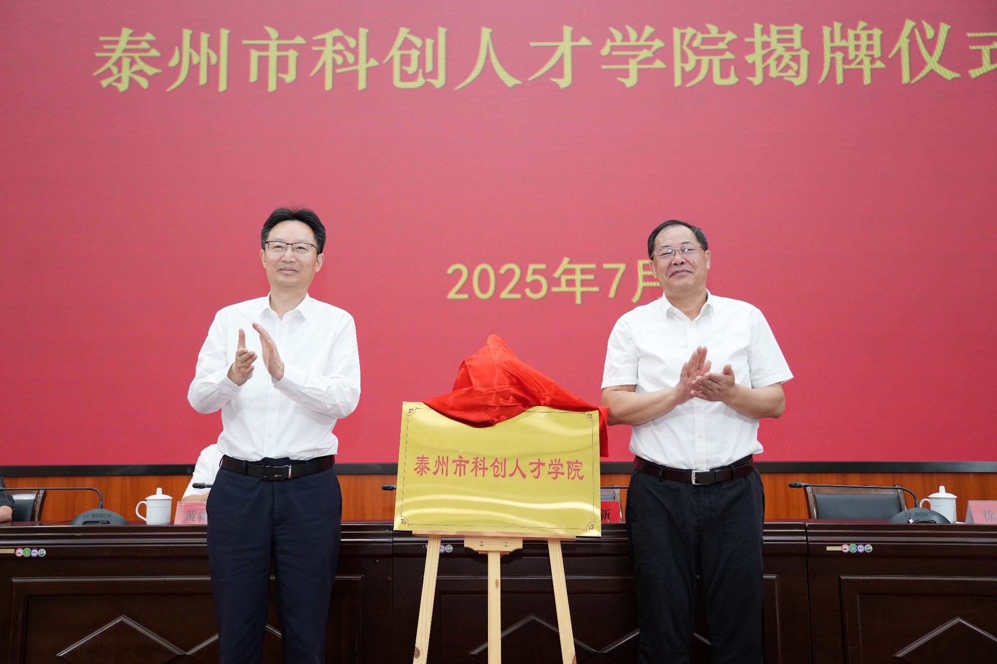 活动现场,周恒新和徐向明共同为泰州市科创人才学院揭牌。