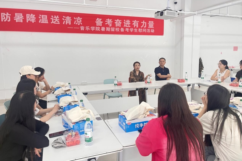一份清凉承载深深关爱,万分期许尽显育人初心。此次慰问活动不仅为酷暑中奋斗的学子注入了信心与力量,也进一步增强了音乐学院的凝聚力,为深化人才培养和优良学风建设注入了新的活力。