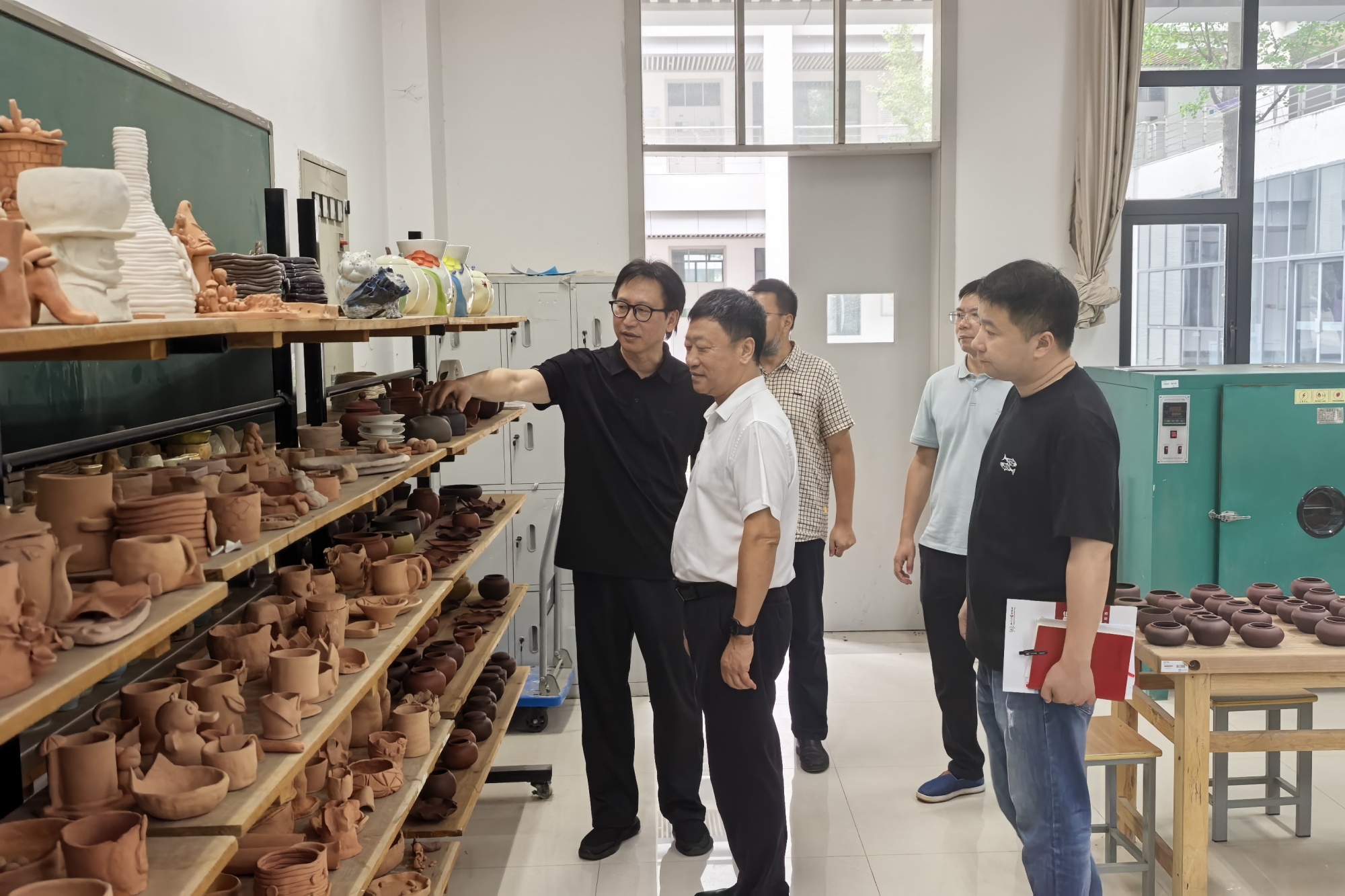 会后,蔡伟一行还实地走访了美术学院富媒体工作室、陶艺工作室、雕塑实验室等教学实践场所,直观了解学院在艺术创作、实践教学等方面的硬件设施与教学成果,对学院浓厚的艺术氛围和鲜明的办学特色给予高度评价。