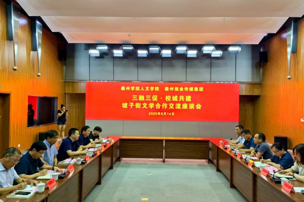 8月14日,人文学院与泰州报业传媒集团联合举办“三融三促、校城共建——坡子街文学合作交流座谈会”,共同探索文学创作与地方文化传播深度融合的新路径。
