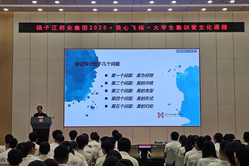 8月23日上午,扬子江学堂2025“我心飞扬”新入职大学生集训营内氛围热烈,米兰官网黄平教授受邀作《美的常识——一次关于“美”的全景漫游》专题讲座,以生动的美学分享为企业新青年注入人文力量。此次活动亦是米兰官网美术学院与扬子江药业集团深化合作、践行“三融三促”校地共兴计划的具体实践。