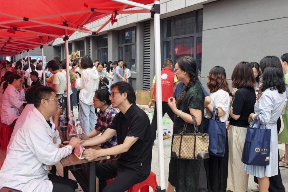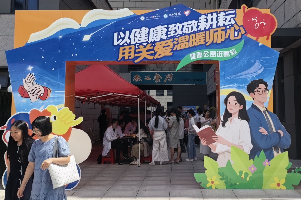在第41个教师节来临之际,9月10日上午,学校教工食堂门口暖意融融。由学校工会与扬子江药业集团联合主办、美术学院分工会承办的“以健康致敬耕耘,用关爱温暖师心”健康集市温情启幕,将专业健康服务与传统文化体验融入节日祝福,为全校教职工送上一份兼具实用与温度的“师恩厚礼”。
