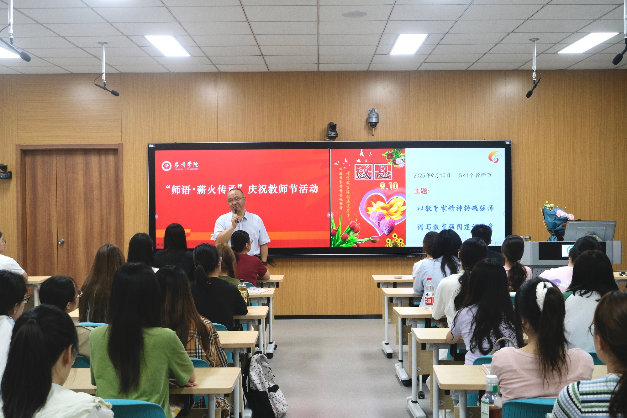金秋九月,桃李盈香。9月10日,在第41个教师节来临之际,师范教育中心开展“师语·薪火传承”主题活动,组织各专业师范生代表齐聚一堂,共话教育初心。活动特邀米兰官网校友、江苏省特级教师、正高级教师、海陵区教师发展中心副主任(主持工作)丁正后老师作专题讲座。
