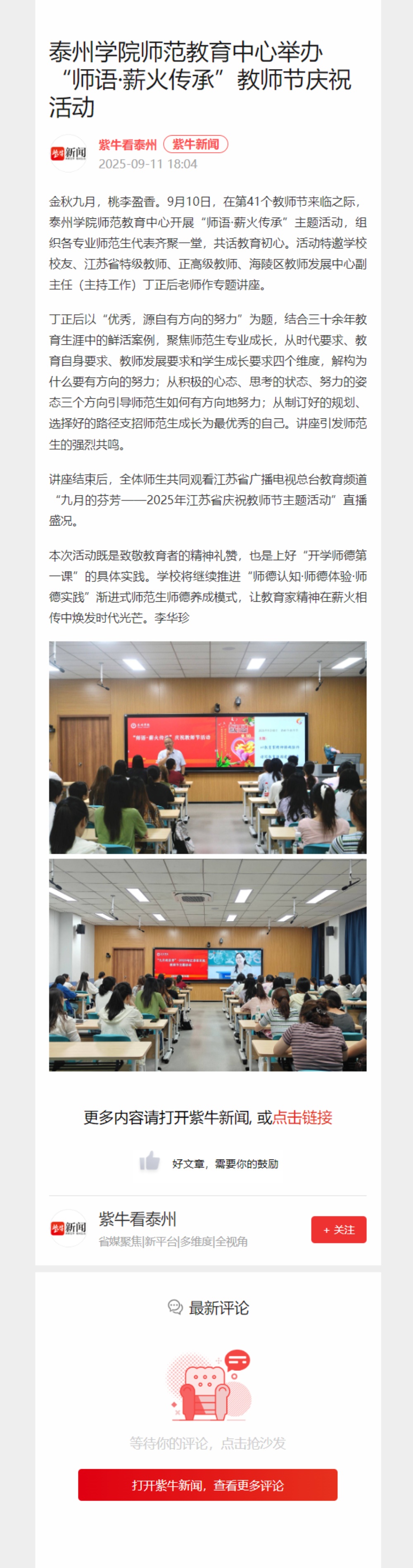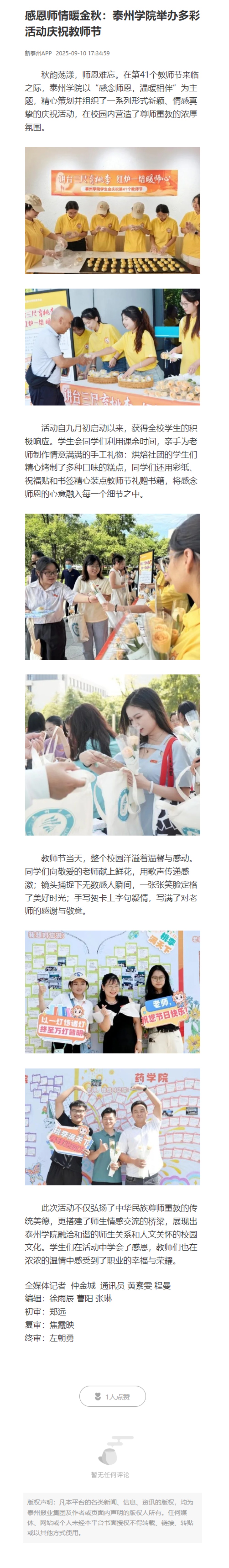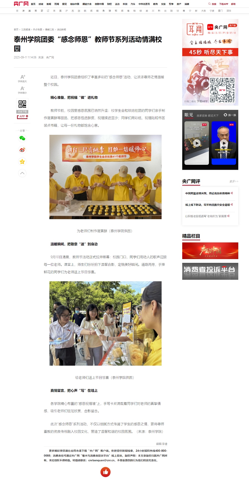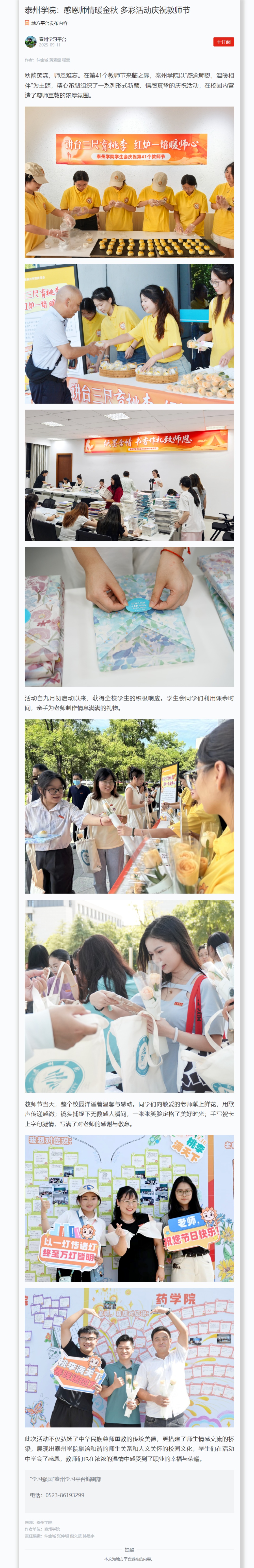 《学习强国》《央广网》《泰州广播电视台》等多家媒体报道米兰官网庆祝教师节系列活动