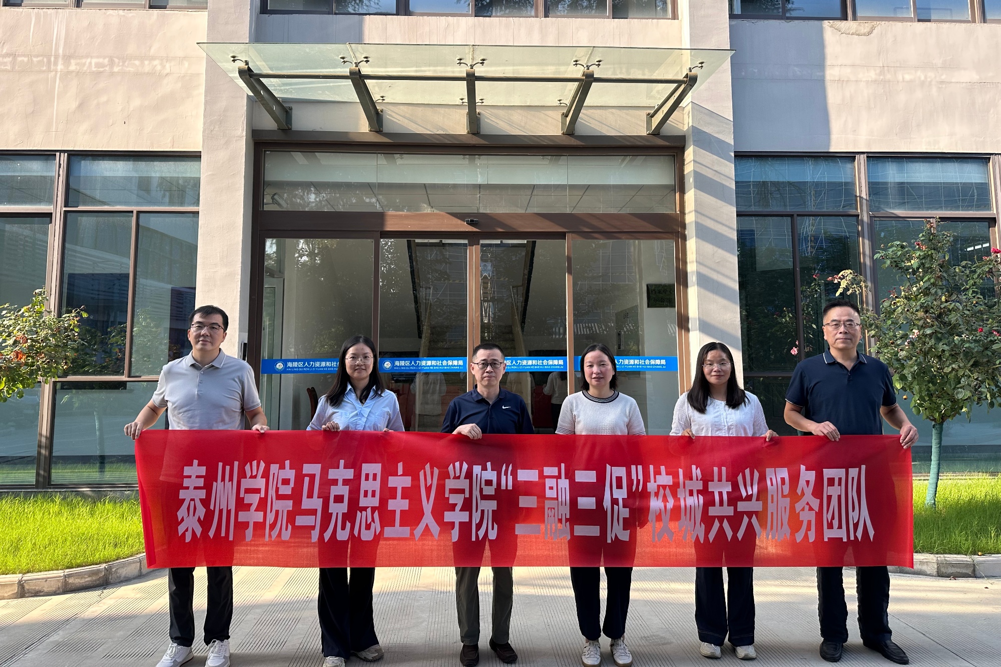 9月15日,马克思主义学院“三融三促”校城共兴服务团队赴海陵区人力资源和社会保障局调研交流,探索校城合作新途径。双方就如何用好马克思主义学院优势资源做好党建服务工作进行了深入探讨。