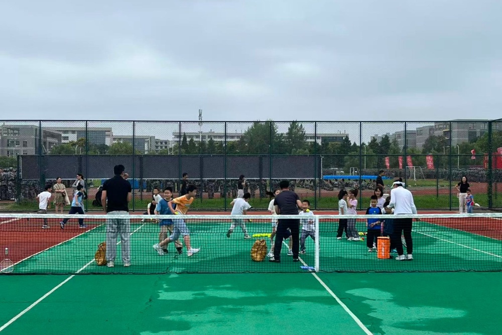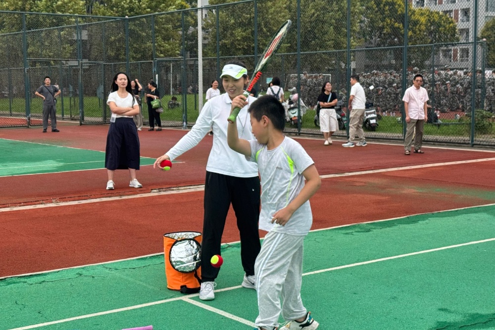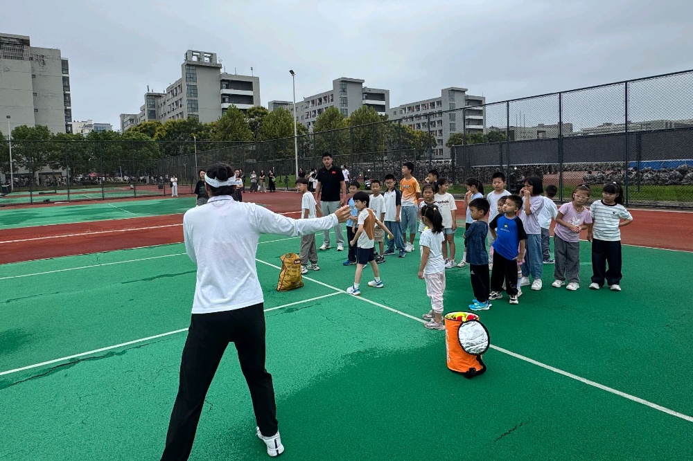 为丰富教职工子女的课余生活,弘扬体育精神,9月13日上午,校工会与公共体育部共同组织的网球公益课在校园网球场开展,吸引众多教职工子女参与。