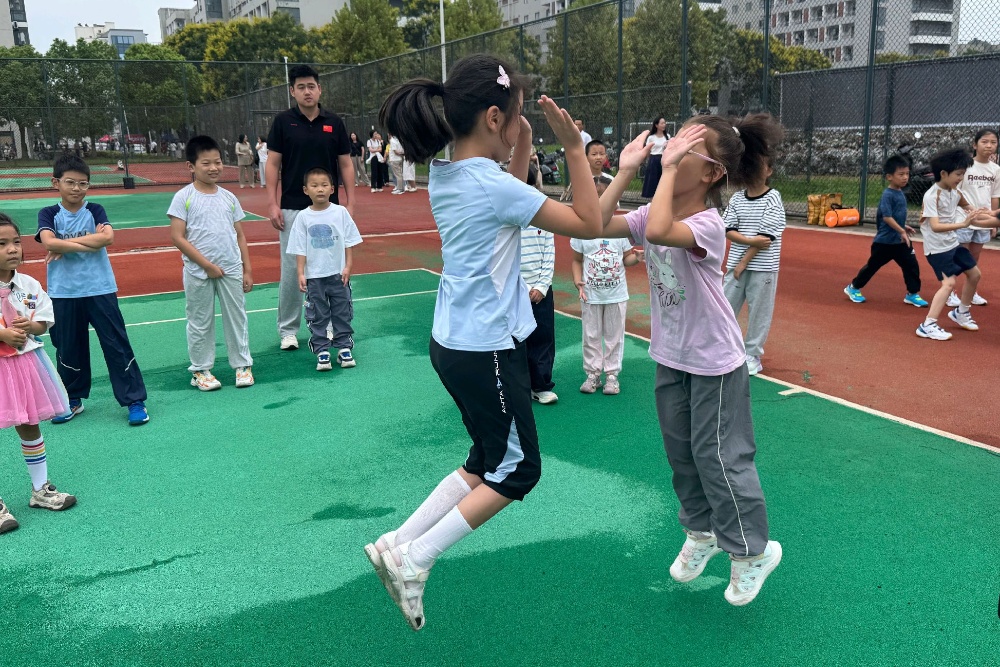 公共体育部主任赵益鑫及教师李昕然、王海涛、王开宾组成专业团队,以“专业普惠、趣味启智”为核心,构建了系统化的启蒙教学框架。课程中,老师们将“体能训练”与“球感培养”结合,通过网球障碍跑、趣味抛接球等活动,让孩子们在趣味互动中增强体质、感受网球魅力。