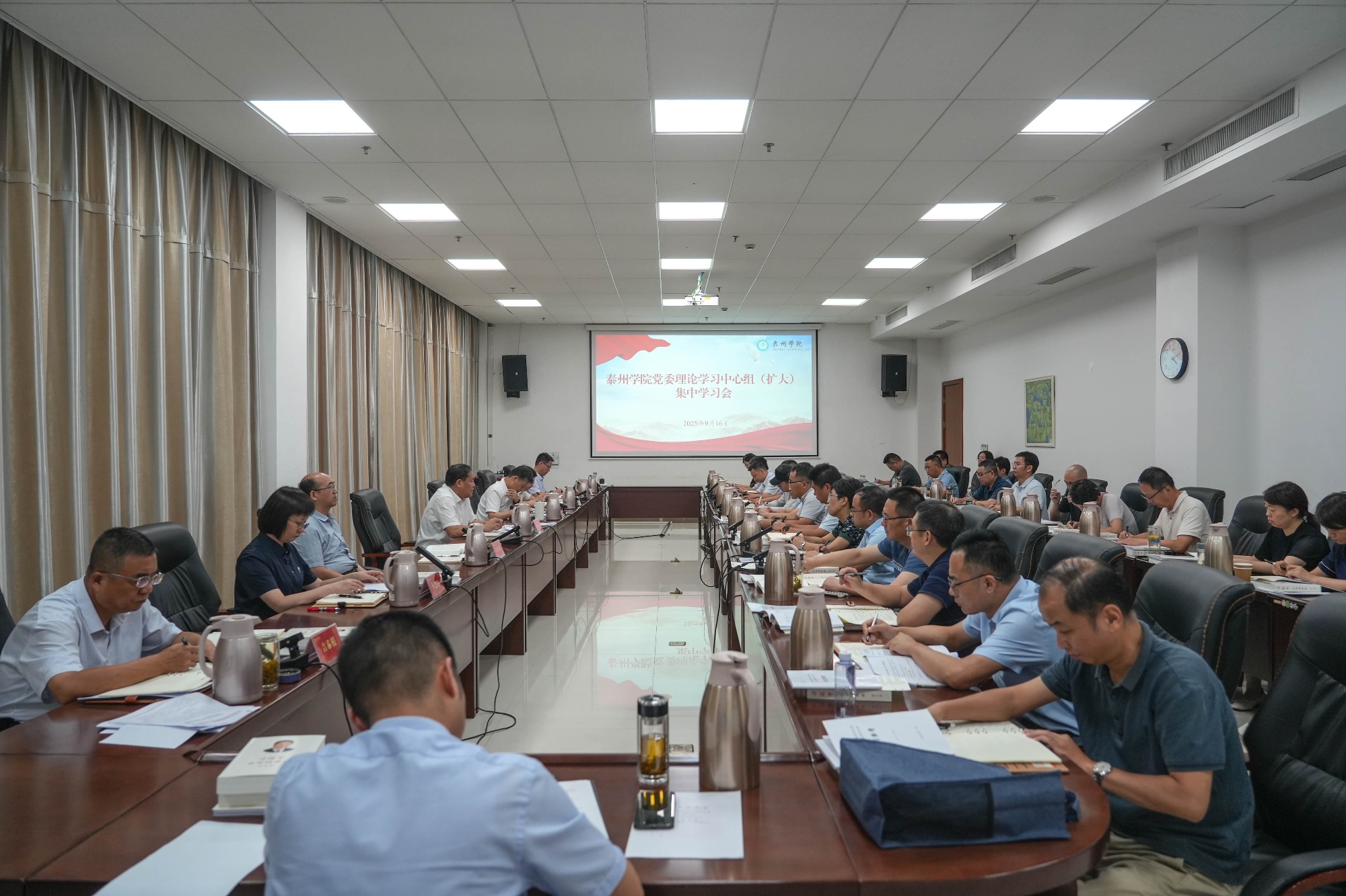 9月16日下午,校党委理论学习中心组(扩大)在D2109会议室召开集中学习会,深入学习习近平总书记重要论述、重要会议和文件精神,围绕“进一步提升党建工作质量”开展交流研讨。校党委书记徐向明主持会议并讲话。