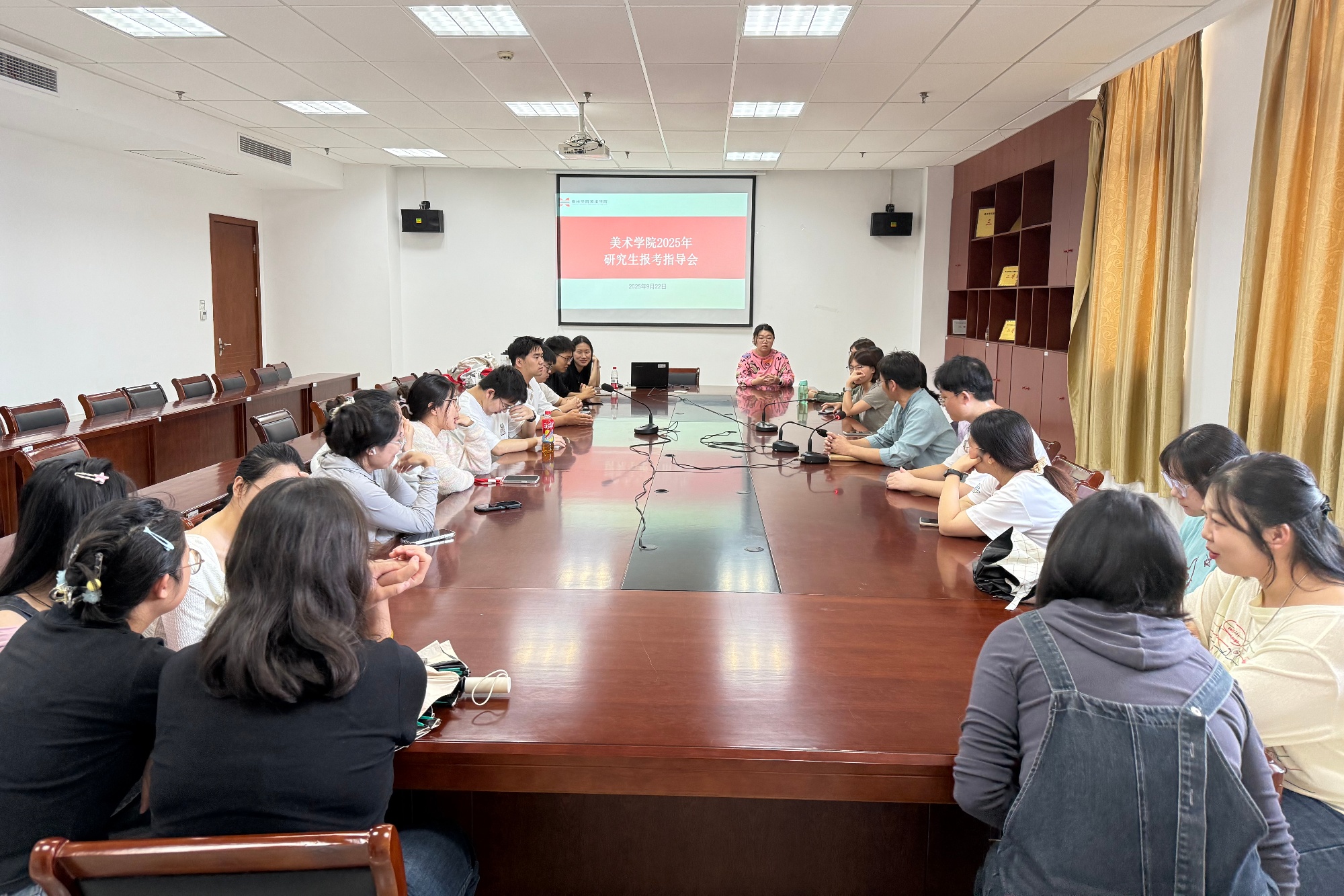 9月22日下午,美术学院在二适楼C1602召开研究生报考指导座谈会,美术学院党总支书记吴新林及考研学生参会。