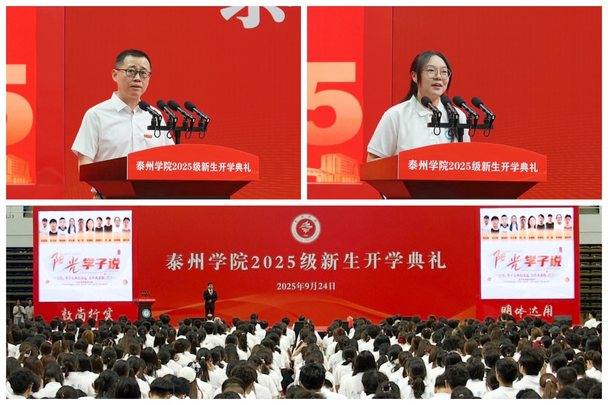 现场播放的优秀校友视频集锦《阳光学子说》,透过学长学姐的成长故事——从校园里的勤奋求知到职场上的扎实奋斗,让新生们感受到“泰院人”的精神传承。学长学姐暖心的寄语与实用的建议,也为新生快速适应大学生活、开展生涯规划提供了宝贵指引。