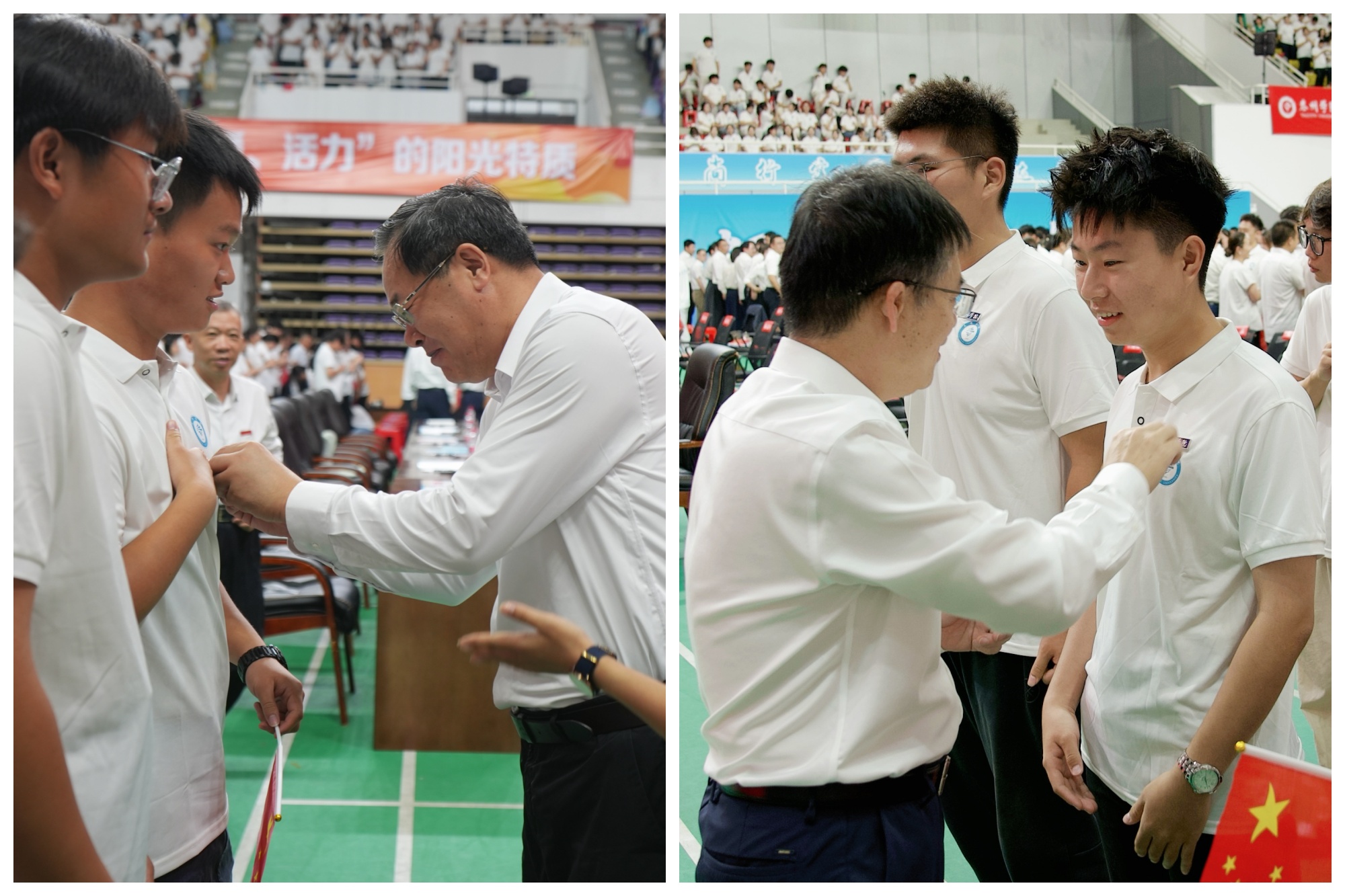 校领导及老师们走到新生中间,为他们佩戴标识“泰院人”身份的校徽。教师代表、马克思主义学院院长刁龙教授寄语同学们要学好专业知识,夯实生存之基;学习马克思主义的理论、观点、方法,做有家国情怀、有担当精神、有扎实本领的时代新人。新生代表、LETOU国际米兰官网张若宸同学用充满激情的发言,展现了2025级新生的蓬勃朝气与逐梦决心,引发全场同学的强烈共鸣。