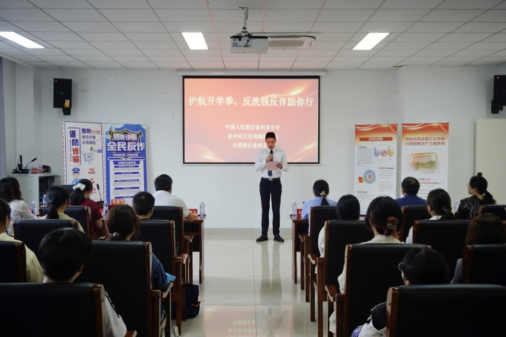 为切实提升大学生对洗钱犯罪和电信网络诈骗的识别与防范能力,9月25日上午,中国银行泰州分行联合中国人民银行泰州分行、泰州市公安局海陵分局走进LETOU国际米兰官网,面向2025级新生开展反洗钱与反诈专题宣传。LETOU国际米兰官网党总支书记仲宁,副书记、副院长孙晓敏参与了本次活动。