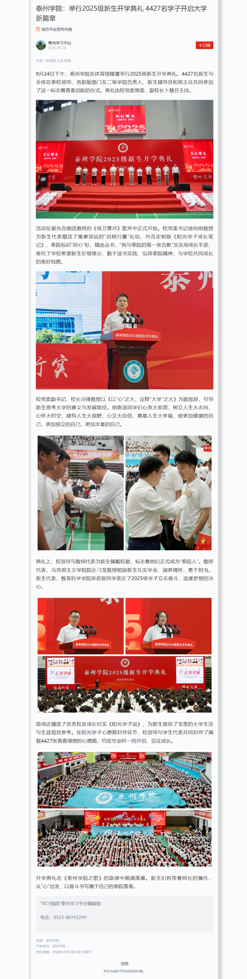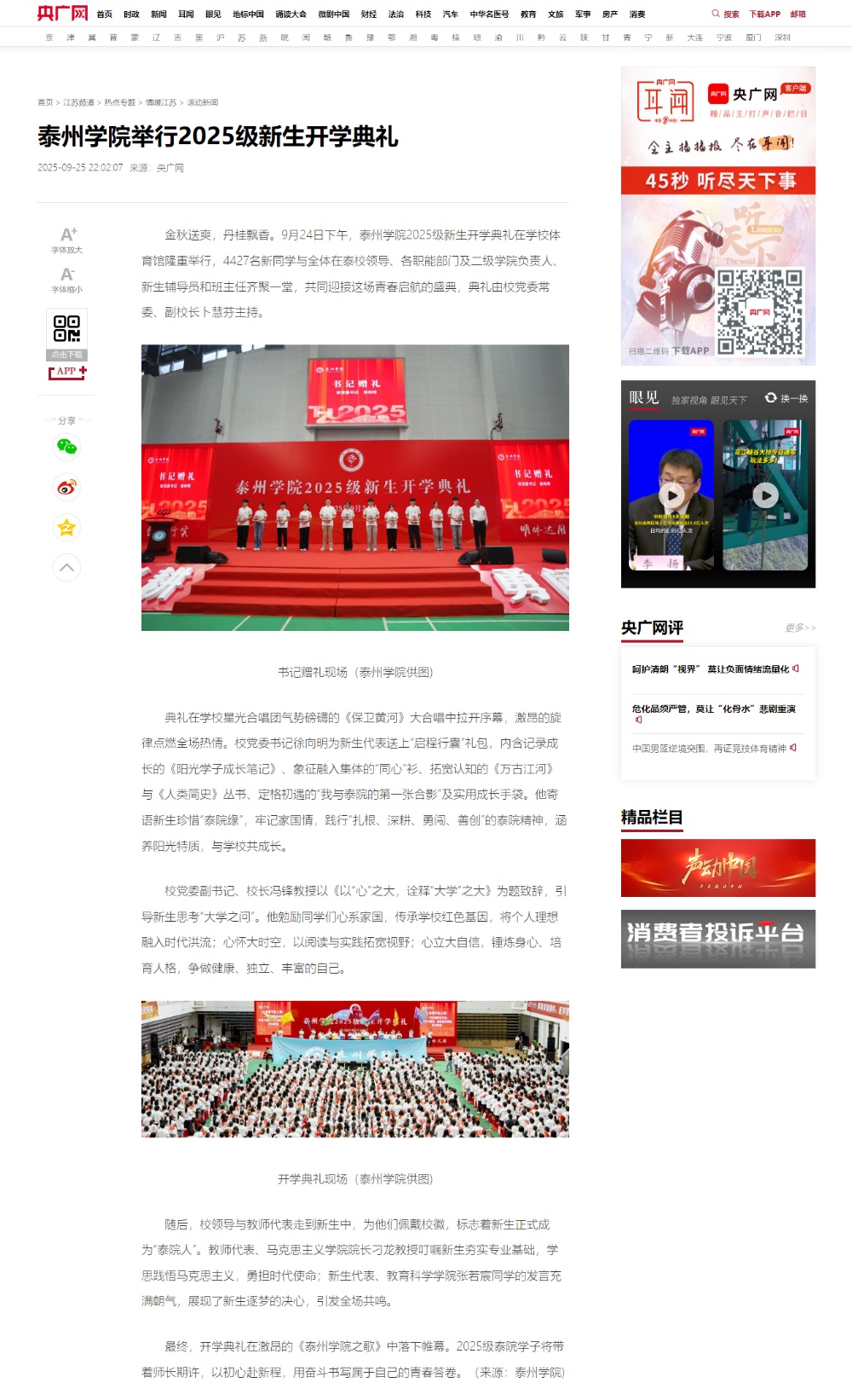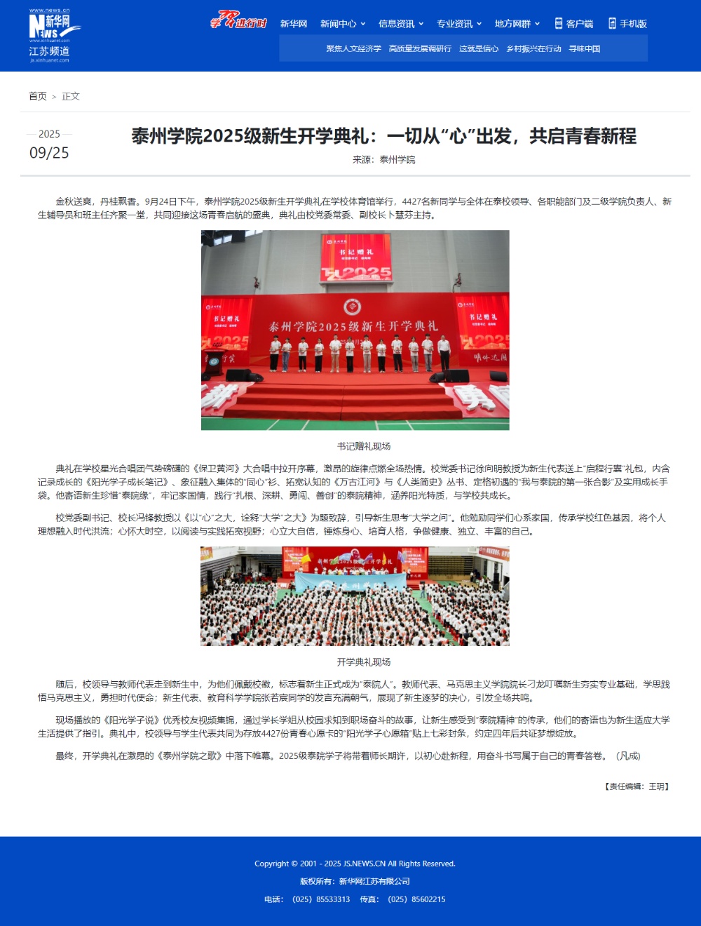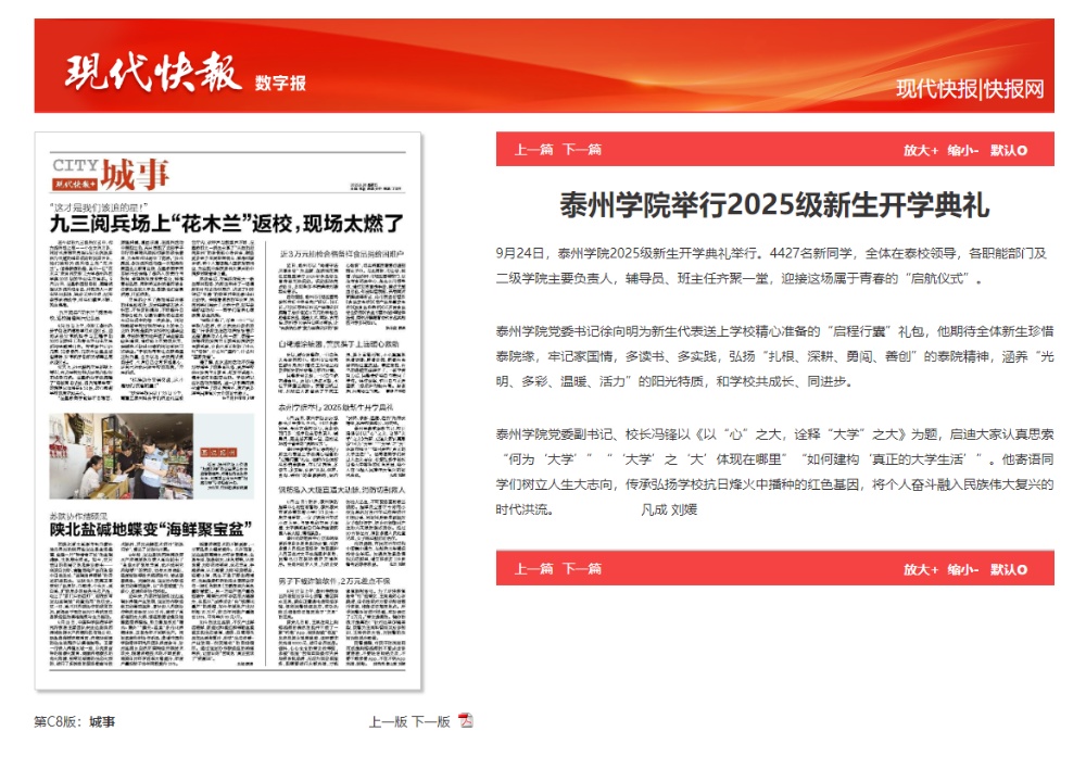 《学习强国》《新华网》《央广网》《现代快报》等多个媒体平台报道米兰官网2025级新生开学典礼