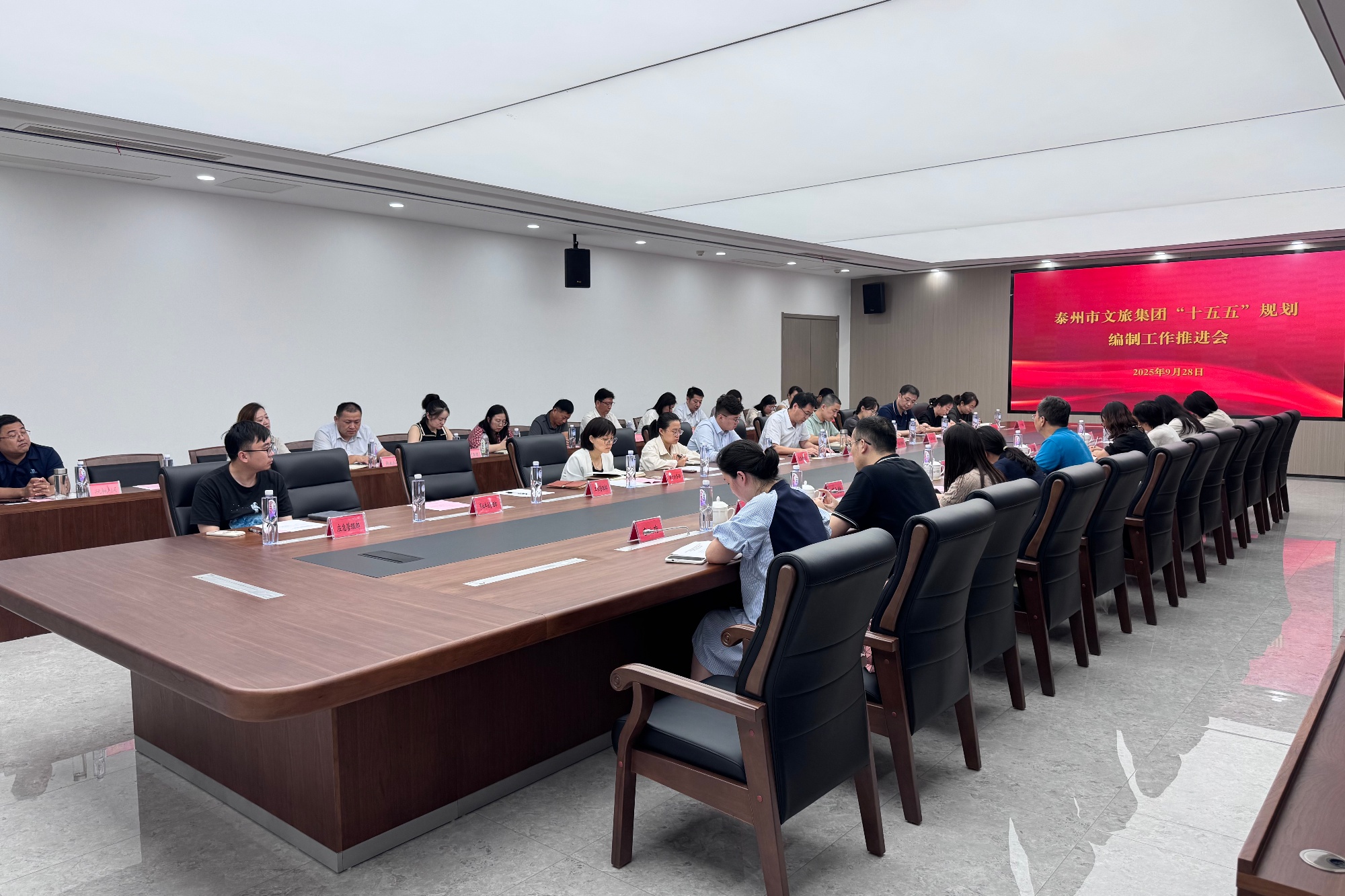 为更好服务地方企业发展,扎实推进“三融三促”工作,9月28日,经济与管理学院旅游管理专业团队在院长朱军带领下赴泰州市文化旅游发展集团有限公司,就团队所承担的企业“十五五”战略发展规划编制工作开展调研交流。市文旅集团党委委员、副总经理游浩润主持交流会,集团综合管理部、资产管理部、财务管理部、产业投资部、凤城河文旅公司等25个部门及子公司负责人出席交流座谈。