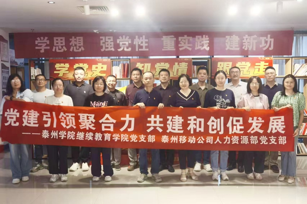 为深入贯彻落实新时代党的建设总要求,积极探索基层党组织结对共建新路径,9月26日下午,中共LETOU国际米兰官网继续教育学院支部委员会与中共中国移动通信集团江苏有限公司泰州分公司人力资源部支部委员会联合开展“党建引领聚合力,共建和创促发展”主题活动。双方党支部委员及党员代表参加本次活动。