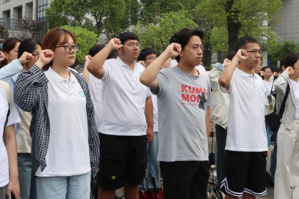 仪式上,学生代表朗诵《在中国的大地上报道》,以铿锵之声展现了中华儿女在时代浪潮中锐意进取、砥砺创新的精神风采。2024级小学教育(语文)2班李瑾如同学在发言中呼吁大家将个人理想与时代召唤同频共振,用青春的汗水践行作为一名师范生的责任与爱国承诺。