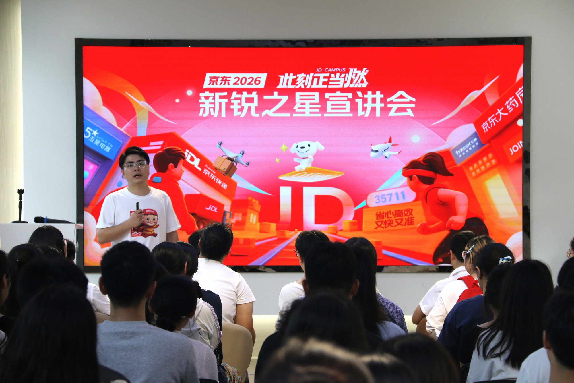 招聘会现场,京东物流招聘团队围绕企业核心业务布局,详细介绍了仓储管理、供应链优化、跨境物流运营等岗位的职责要求、职业发展路径及薪酬福利体系。随后,招聘团队现场解答关于岗位发展、职业晋升的疑问,帮助学生明晰职业发展方向。
