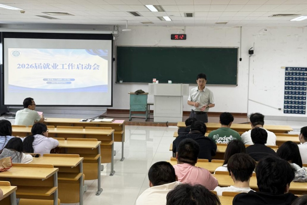 为扎实推进毕业生就业与升学工作,科学引导学生规划毕业学年发展路径,9月29日上午,化学化工与材料工程学院在博文楼A2307召开2026届就业工作启动会。学院党总支书记朱诚、副院长朱禹,各系主任、毕业班班主任、全体辅导员及2026届全体毕业生共同参会。