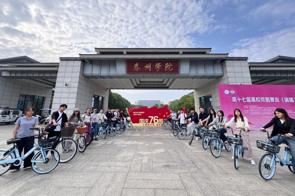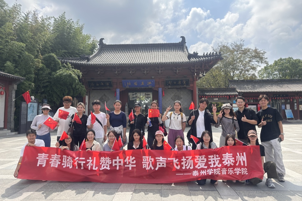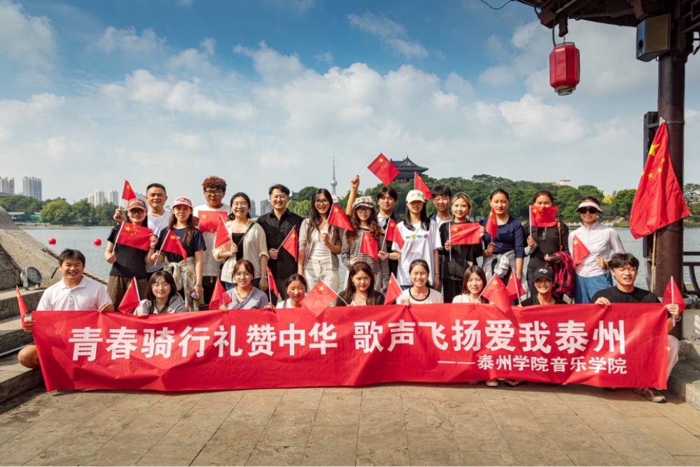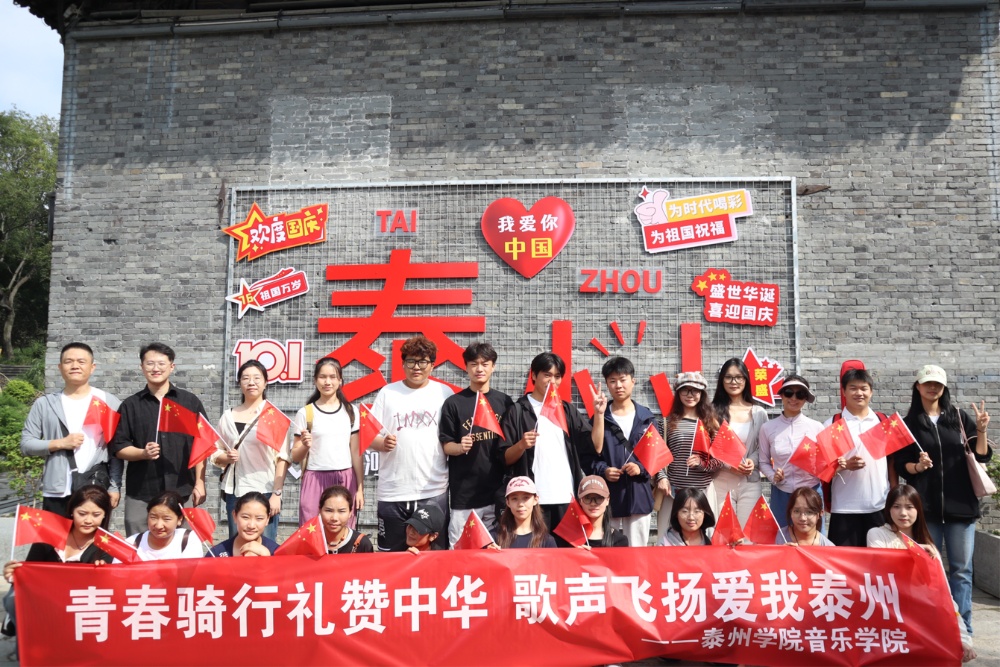为热烈庆祝中华人民共和国成立76周年,激发师生爱国热情,生动展示新时代青年积极向上的精神风貌,10月1日上午,音乐学院组织开展“青春骑行礼赞中华,歌声飞扬爱我泰州”国庆骑行活动。其中,参与活动的20余名学生均为国庆假期留校的外省学子。