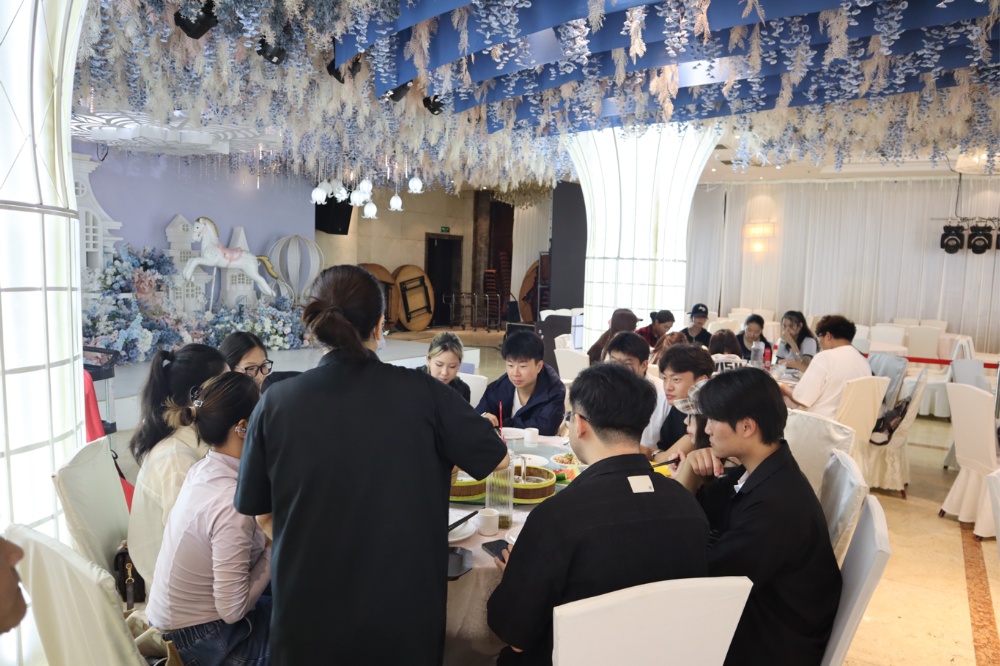 活动伊始,师生们一同品尝泰州早茶。热腾腾的干丝、蟹黄包、鱼汤面,在舌尖的美味中,来自五湖四海的外省同学们真切感受到泰州深厚的人文底蕴和亲切的城市温度,沉浸式体验“水城慢生活”的独特魅力,瞬间拉近了与这座城市的距离。