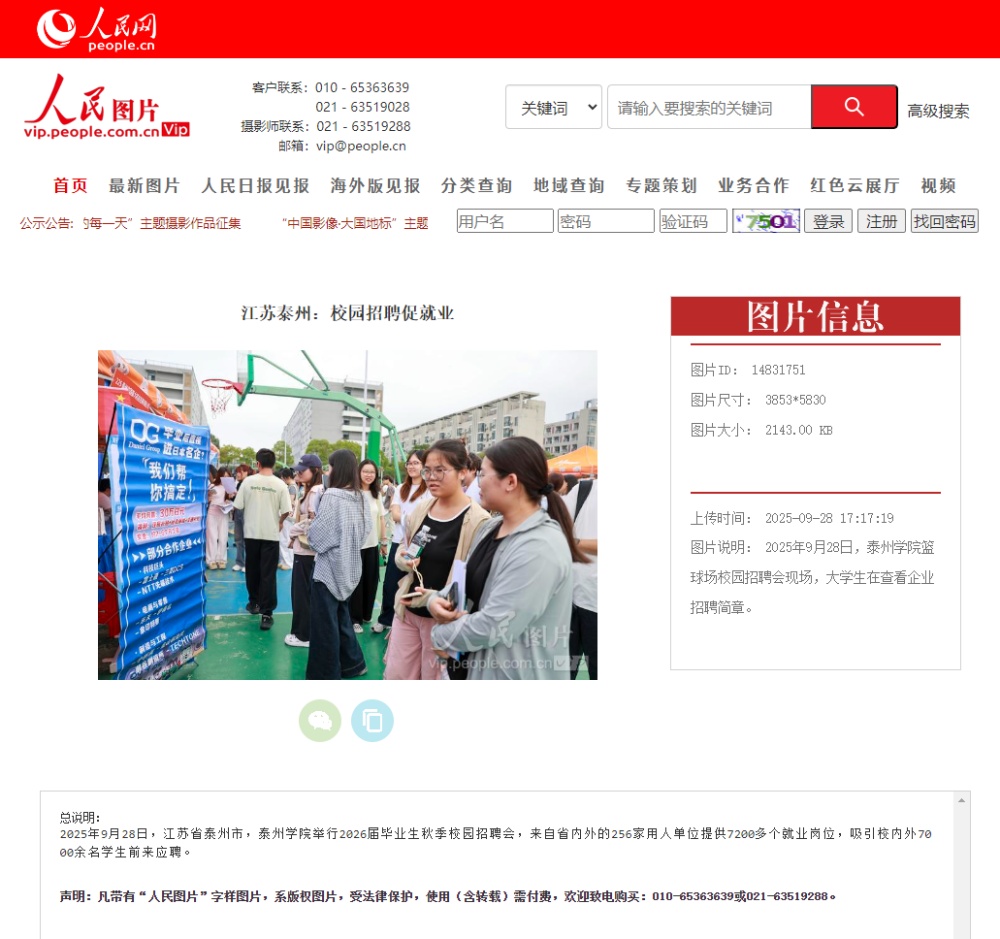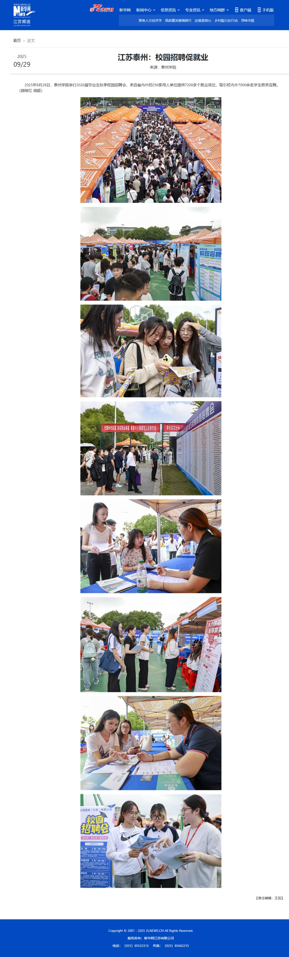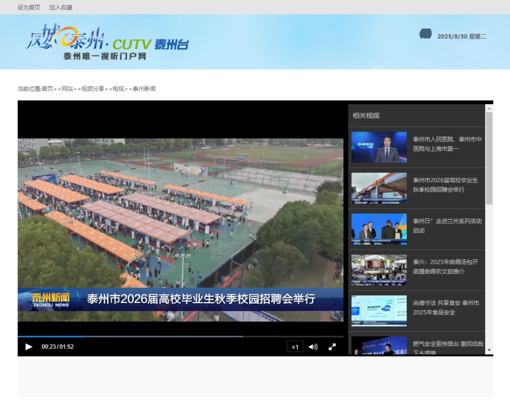 《人民网》《新华网》《扬子晚报》《泰州广播电视台》分别报道米兰官网校园招聘会