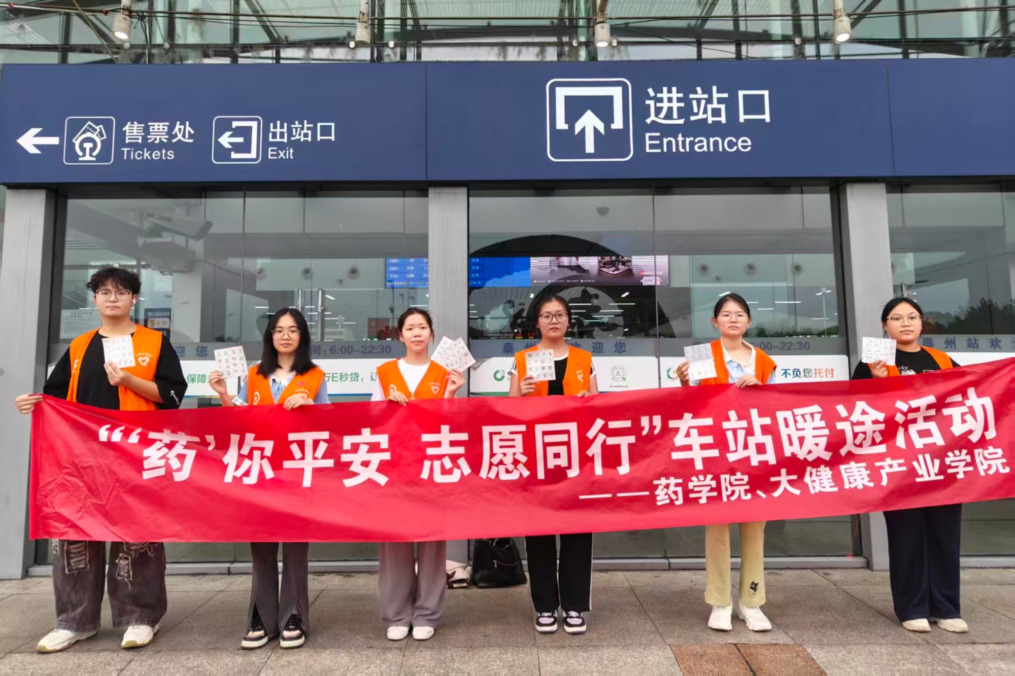 9月30日至10月8日,药学院组织学生志愿者赴泰州火车站开展“药你平安·志愿同行”国庆暖途服务活动。依托药学专业,志愿者们通过健康科普与贴心服务,为旅客送上安全出行保障和节日祝福。