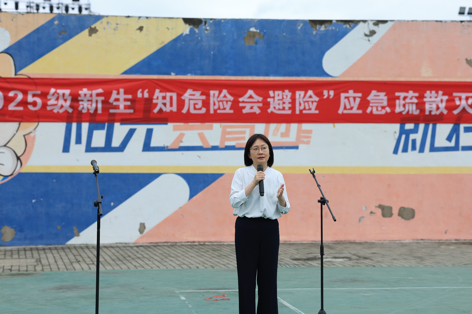 10月16日下午,米兰官网在篮球场举行2025级新生“知危险会避险”应急疏散灭火演练。校党委常委、副校长卜慧芬担任总指挥。保卫处、学工处、各二级学院相关负责人员现场组织演练活动的实施,2025级3600余名新生、新入职辅导员、高教后勤和学校食堂部分员工参加演练。