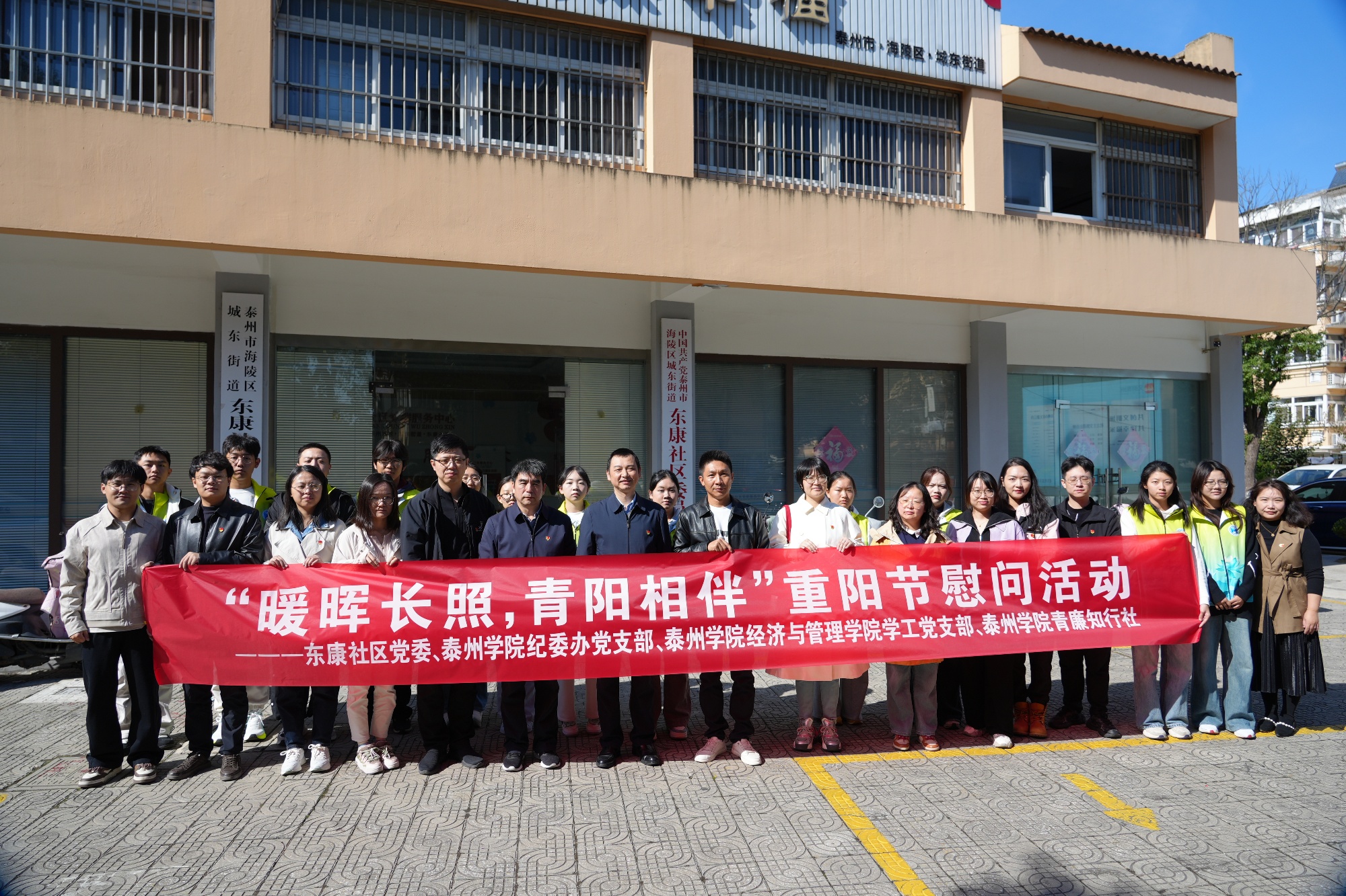 岁岁重阳至,年年情更浓。10月29日,重阳节当天,米兰官网纪委办党支部、经济与管理学院学工党支部的党员代表、青廉知行社学生代表,一同走进海陵区城东街道东康社区,开展“暖晖长照,青阳相伴”重阳节慰问活动,用实际行动为社区老人送上温暖和关怀。