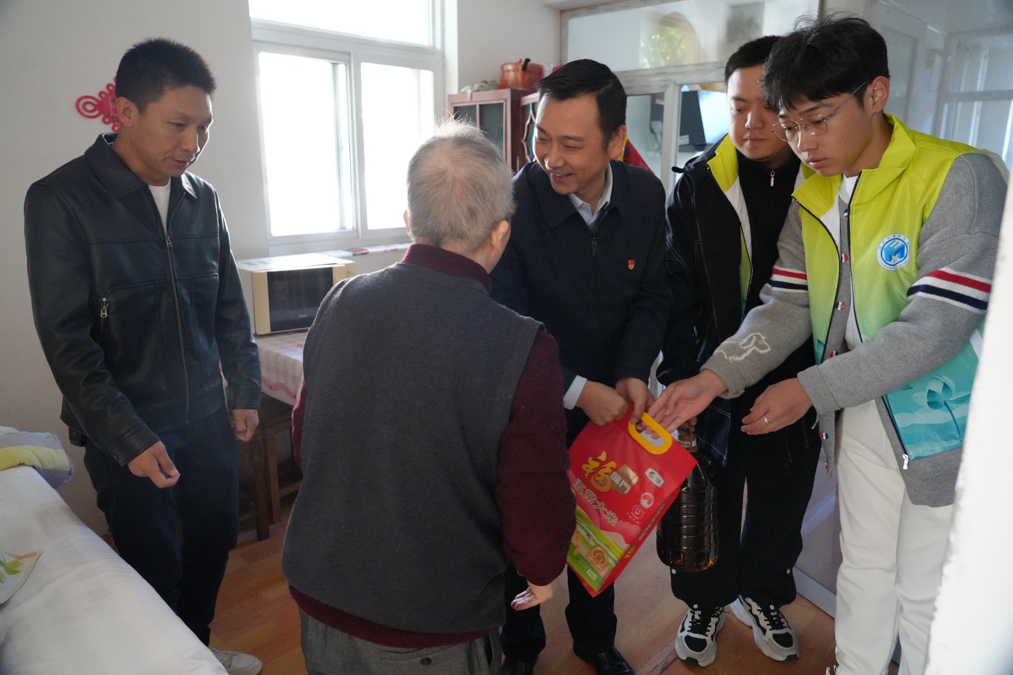 在社区工作人员引导下,党员们走访辖区内独居、困难孤寡老人,为老人们送上重阳节慰问品。每到一户,党员们都与老人促膝长谈,倾听他们的故事,细致询问其身体状况,了解他们的实际需求。暖心话语与贴心物资,让老人们感受到温暖与牵挂。慰问间隙,学校和社区就深化党建共建、常态化开展志愿服务工作等进行了交流。