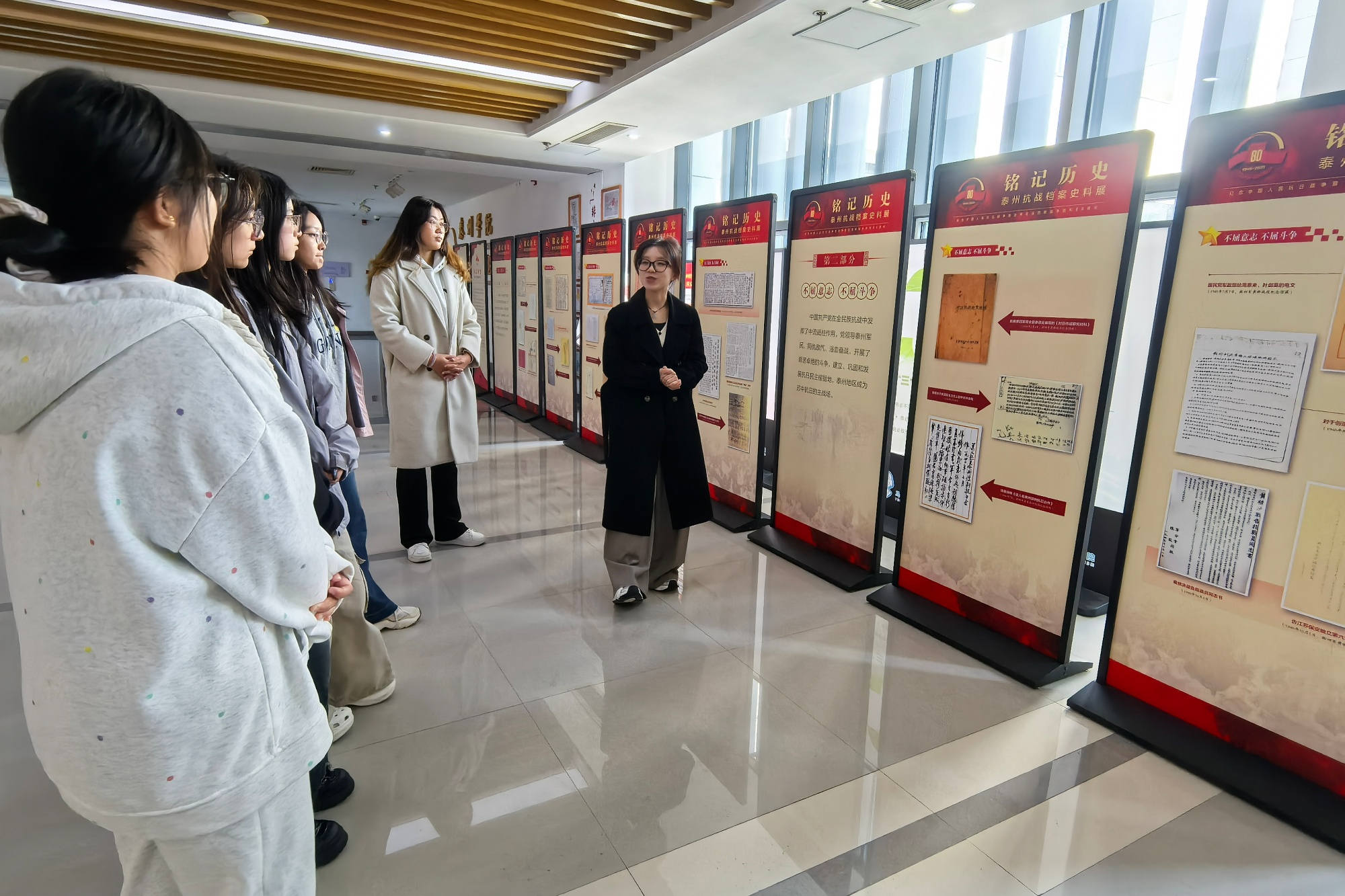 10月23日至11月1日,马克思主义学院在明达楼二楼大厅举办“铭记历史——泰州抗战档案史料展”。此次展览由马克思主义学院联合中共泰州市委宣传部、中共泰州市委市级机关工作委员会、泰州市档案局、泰州市党史方志办公室(市档案馆)等多部门共同打造,以政校联动为抓手,通过多元学习形式,以抗战史料展为媒,推动红色资源转化为育人实效。