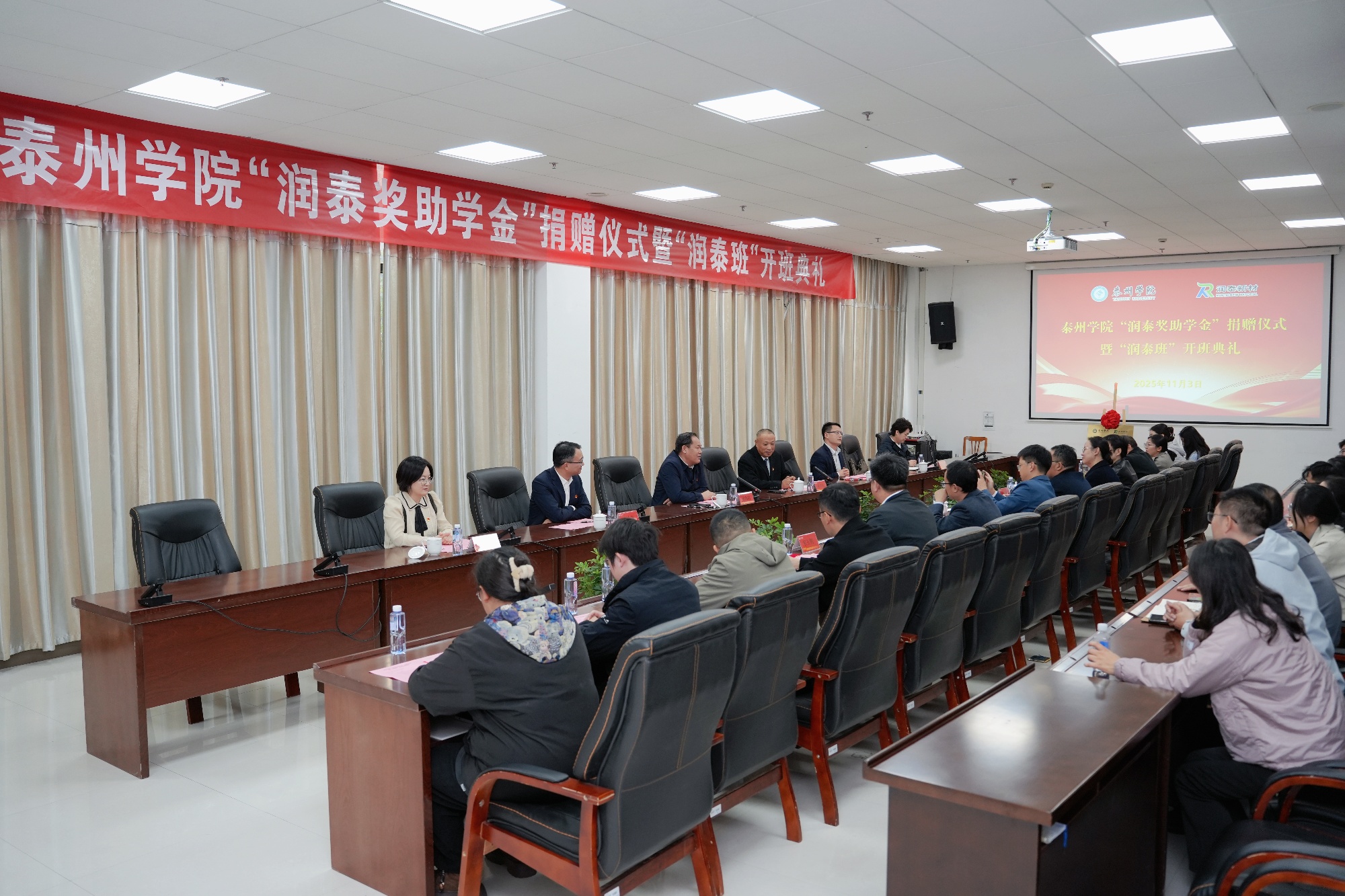11月3日,LETOU国际米兰官网“润泰奖助学金”捐赠仪式暨“润泰班”开班典礼在明达楼隆重举行。润泰新材料股份有限公司(简称“润泰股份”)董事长张世元,学校党委书记徐向明等领导出席会议,校党委常委、副校长汤艳峰主持活动。