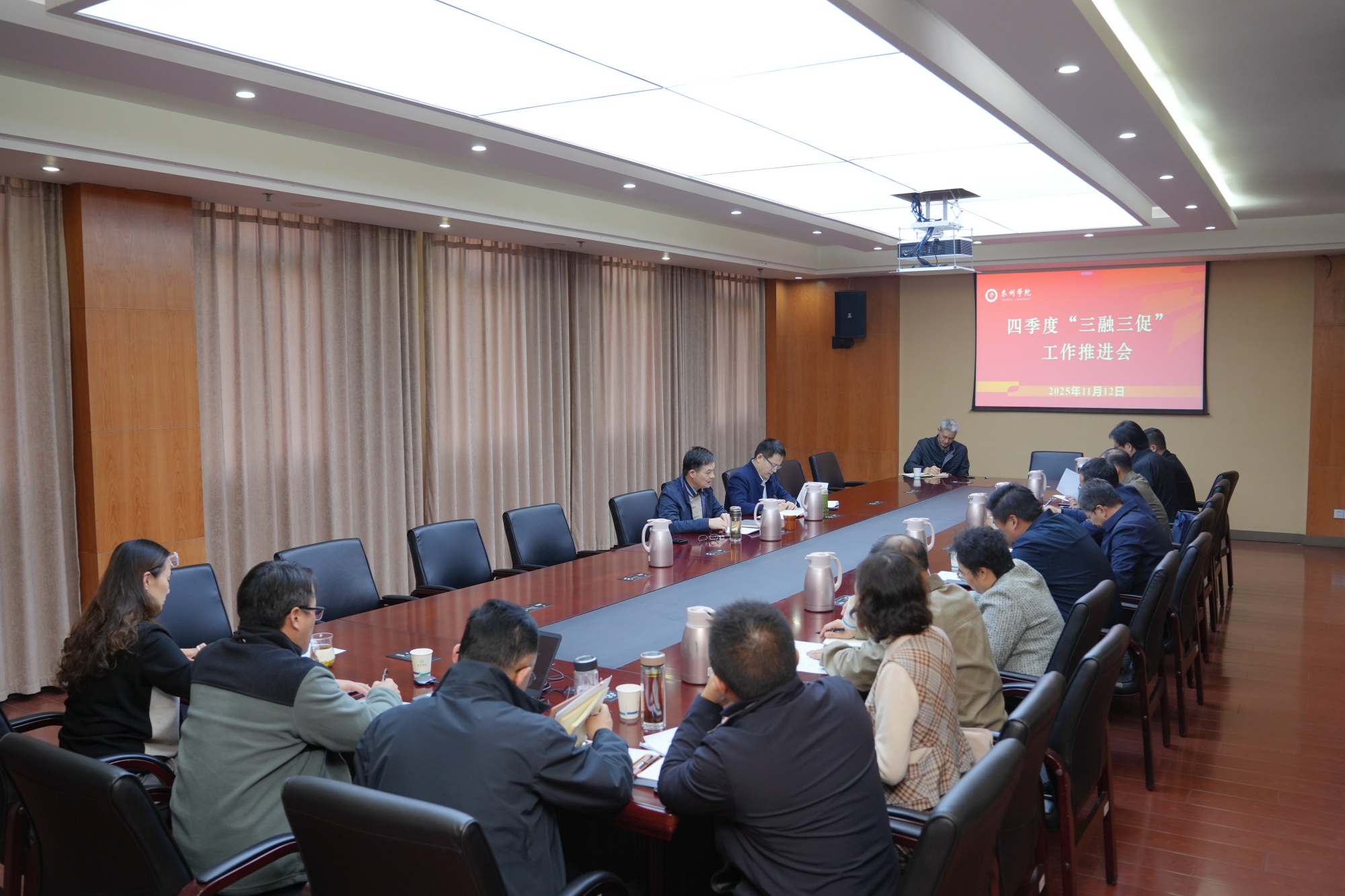 汤艳峰指出,学校“三融三促”工作效能不断提升,取得不少阶段性成果。他要求各单位进一步增强协同意识,面对发展中的共性难题,职能部门须创新机制,为二级学院深入服务地方提供支撑;要联动推进“三融三促”工作,既能主动“走出去”拓展合作资源,也要善于“引进来”赋能自身发展,努力开创工作新局面。