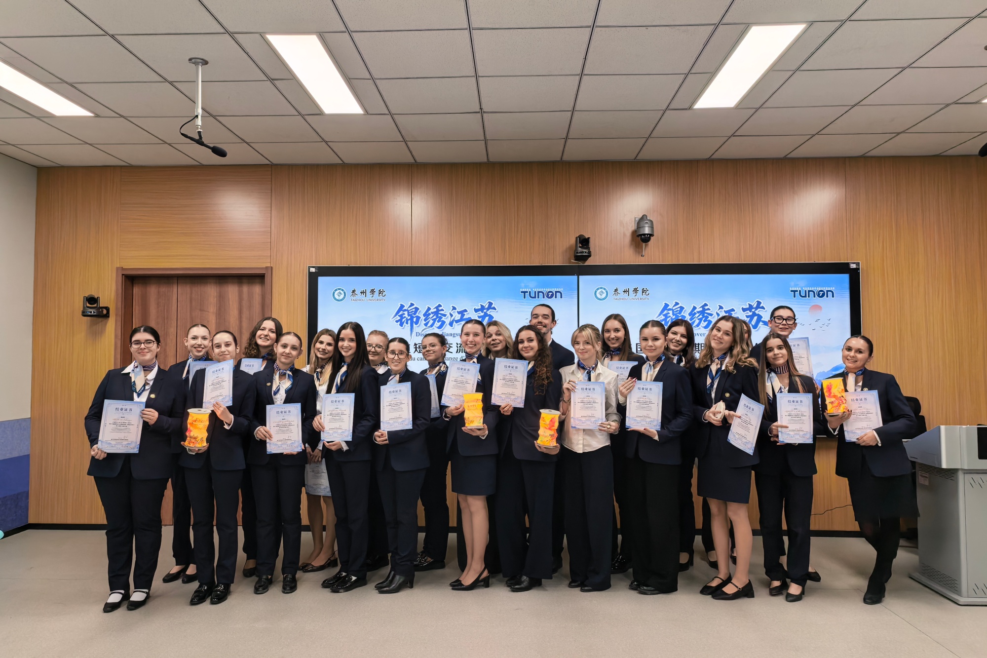 11月15日,由江苏省教育厅主办、米兰官网承办的“锦绣江苏”——幸福水生活法国青年营文化交流活动圆满落下帷幕。法国TUNON国际学院国际合作负责人Hawa带领24名旅游管理和空乘专业师生来到米兰官网,与米兰官网师生(含留学生代表)一起,以课堂研习、课外实践、文化体验等多种形式进行了为期11天的交流学习,搭建起中法青年文明互鉴与友谊的桥梁。