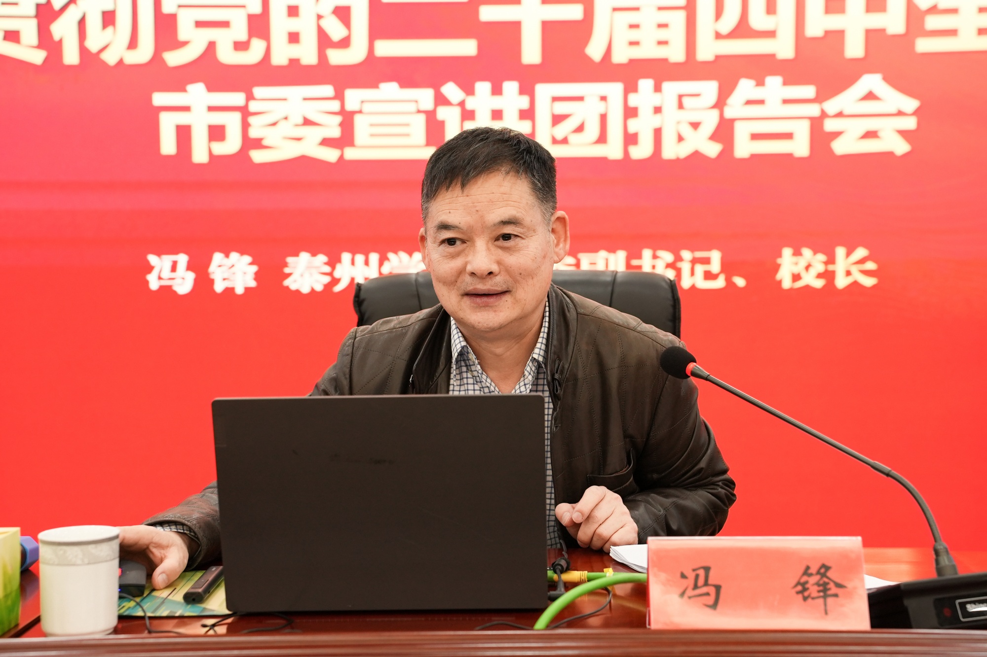 11月20日下午,市委宣讲团成员,校党委副书记、校长冯锋在泰州市城投集团作学习贯彻党的二十届四中全会精神宣讲报告。