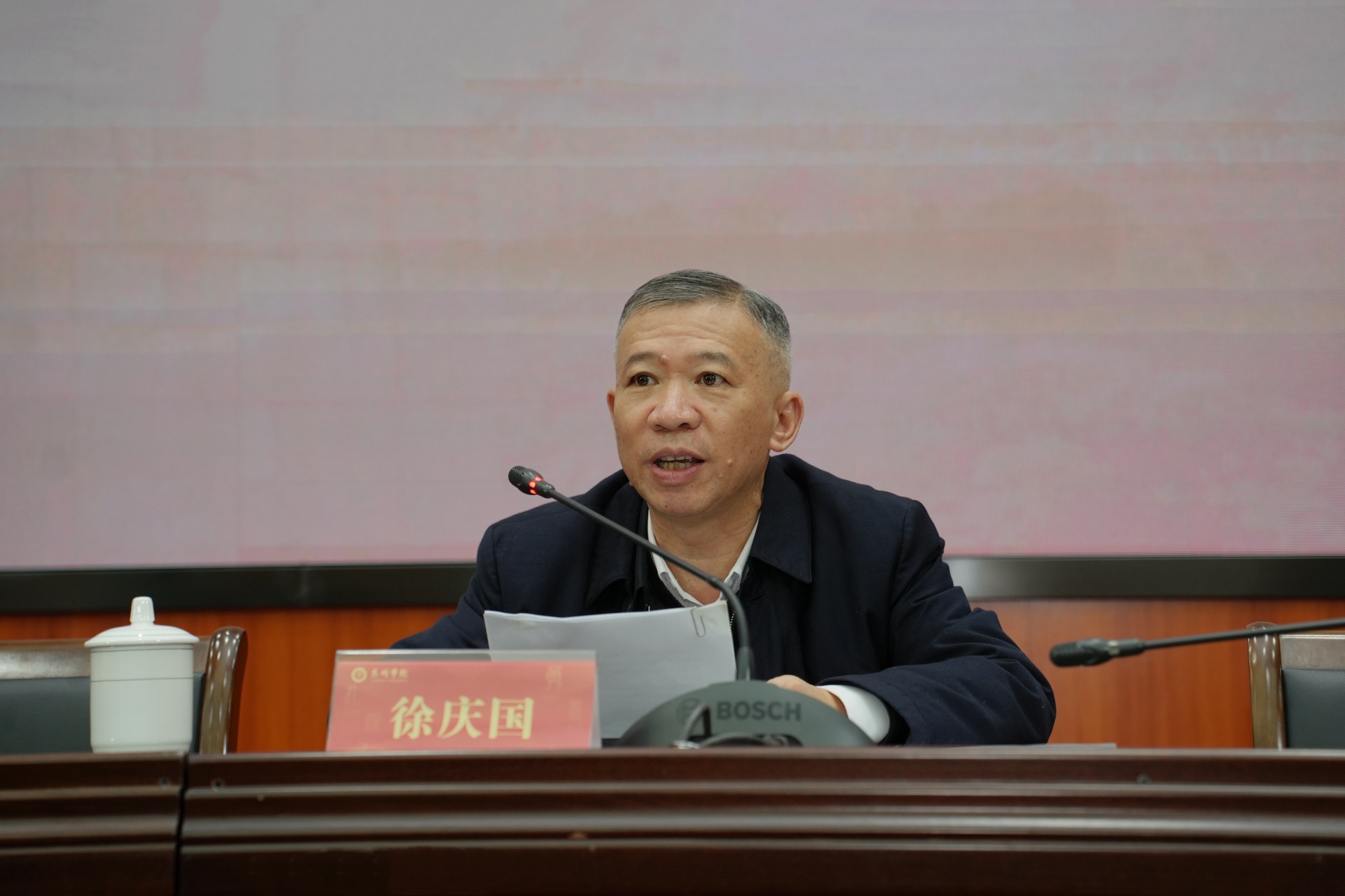 徐庆国在讲话中表示,当前学校正深入学习贯彻党的二十届四中全会精神,处于深化改革、创新发展的关键时期,他期望全体师生以此次学习为契机,学深悟透,筑牢思想根基;躬身实践,锤炼过硬本领;弘扬传播,凝聚奋进力量。