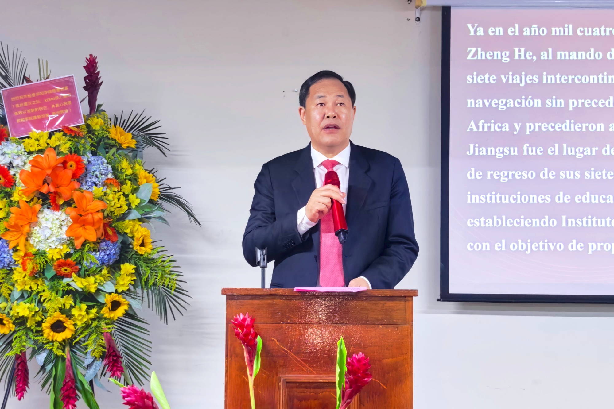 访问期间,秘鲁郑和学院揭牌仪式成功举办,米兰官网党委书记徐向明、秘鲁国立利马南方科技大学校长Gladys、秘鲁江苏商会会长金士洋等出席仪式。米兰官网代表团紧密围绕在秘中资企业对本地化人才的迫切需求,和秘鲁江苏商会及相关企业代表进行了洽谈。双方探讨了定制化培养符合中资企业运营需要的秘鲁本土化人才议题,积极实现人才培养与产业需求的对接。
