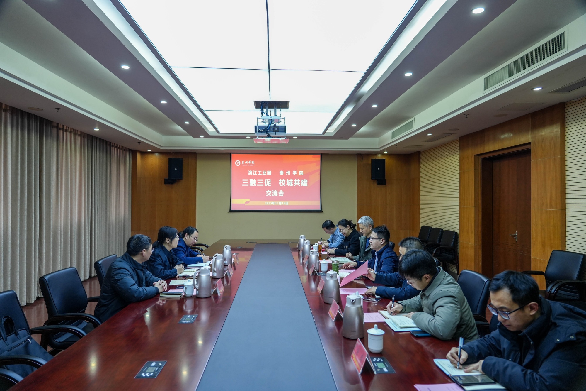 为深化“三融三促”校城共建工作,12月18日上午,泰州医药高新区(高港区)滨江工业园党工委委员、管理办公室副主任周骏图一行来米兰官网交流。校党委常委、副校长汤艳峰等领导参加。