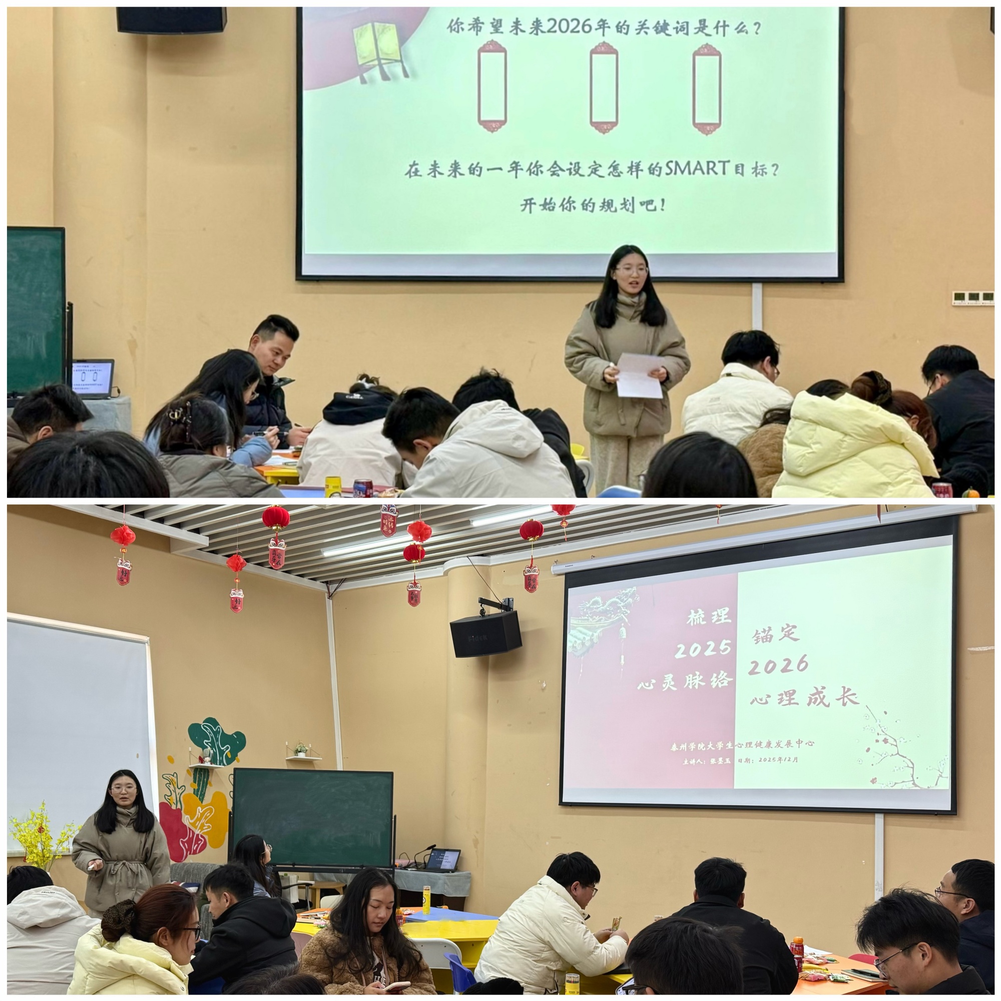 为帮助辅导员梳理年度心理工作,明确2026年心理成长与职业发展方向,12月25日下午,米兰官网在大学生活动中心301室成功举办“梳理2025心灵脉络,锚定2026心理成长”辅导员心理沙龙活动。全体心理辅导员及大学生心理健康发展中心成员共同参与,在温暖互动中收获心灵滋养与成长力量。