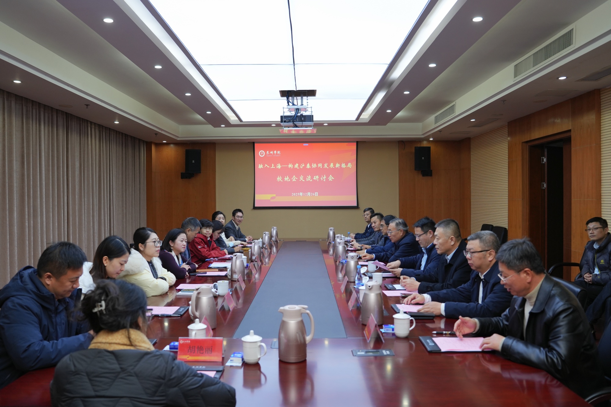 12月26日,上海国家会计学院院长卢文彬、上海交通大学上海高级金融学院EMBA/EE/DBA联席执行主任唐翀与企业家代表一行到访米兰官网。双方围绕“融入上海——构建沪泰两地校地企协同发展新格局”主题展开交流洽谈。校党委常委、副校长汤艳峰接待到访来宾。泰州市教育局局长万永良、中国人民银行泰州市分行副行长孙良涛、中国工商银行泰州市分行副行长陆玉、南京银行泰州市分行行长王栋、江苏普诚投资有限公司董事长邢军等泰州金融部门企业代表应邀参加座谈。会议由校经济与管理学院院长朱军主持。