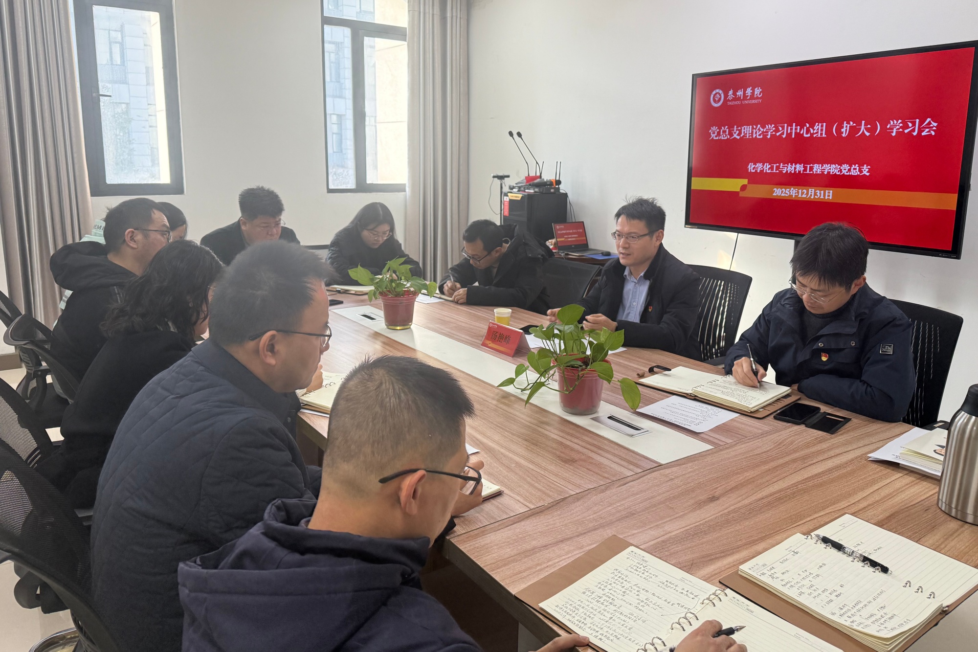 12月31日上午,化学化工与材料工程学院理论学习中心组(扩大)学习会议在明达楼D2226举行,校党委常委、副校长汤艳峰列席旁听。学院领导班子、科级干部、系主任、党支部书记等参加学习。会议由学院党总支书记、院长朱诚主持。