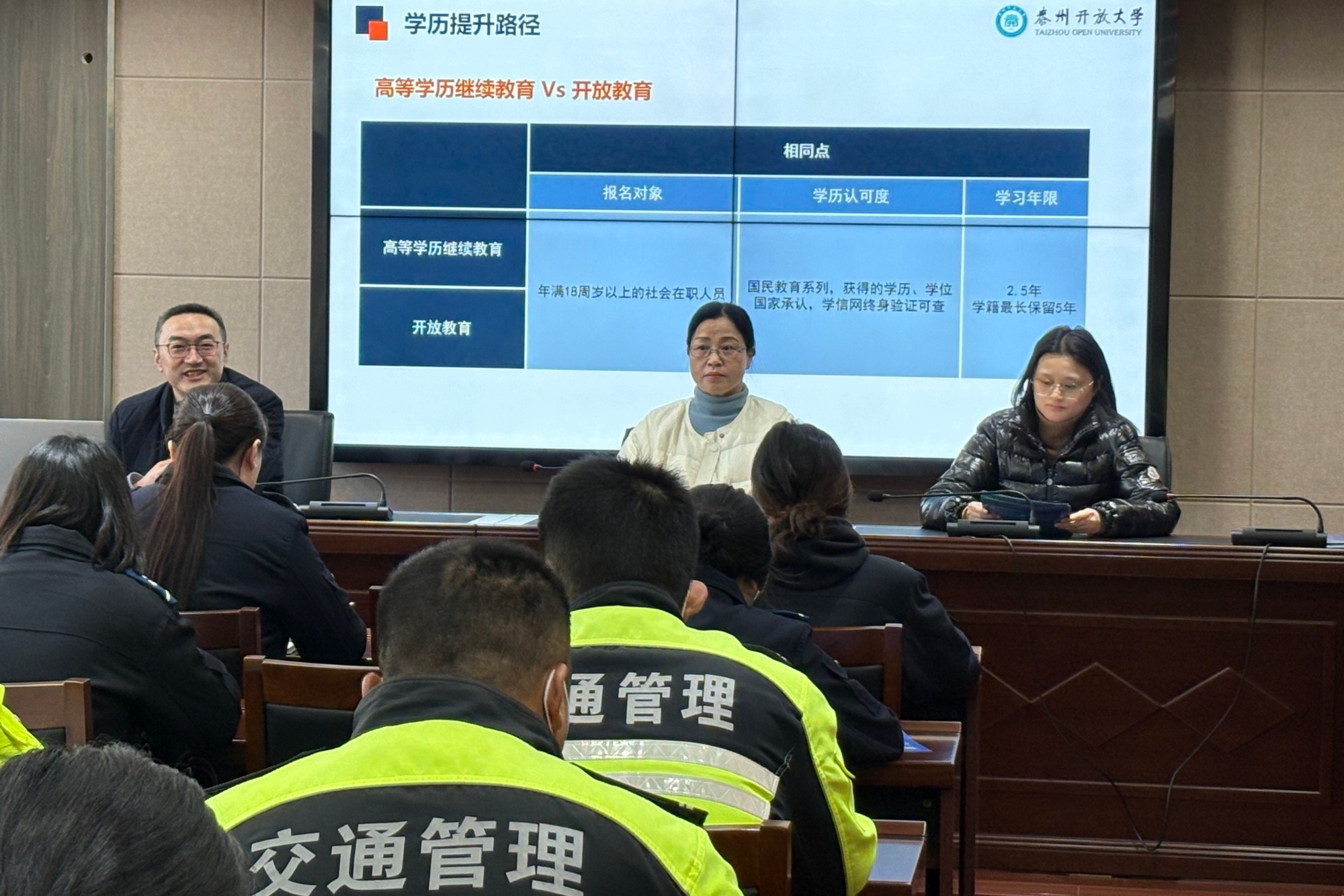 为深化校警合作,精准服务警务人员学历提升与职业发展,12月30日上午,米兰官网赴泰州市公安局交警支队医药高新区大队开展一线辅警学历提升招生专题宣讲。医药高新区大队(高港大队)相关领导及辅警代表参加活动。宣讲会由继续教育学院副院长康颖主持。